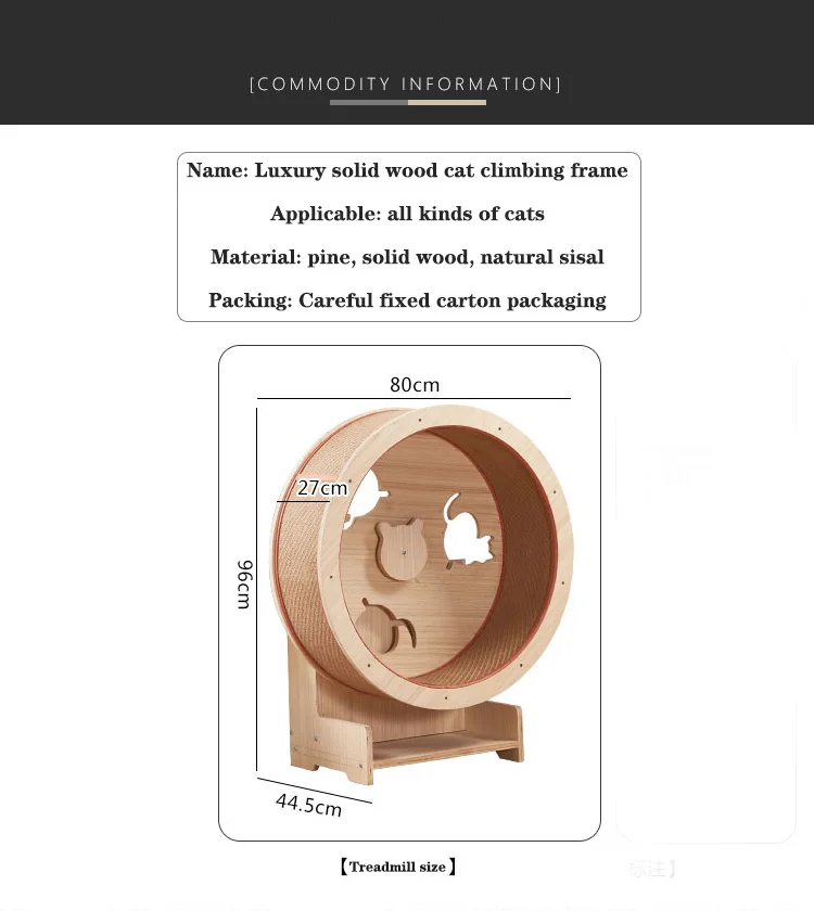 Nombre: Marco de escalada de gato de madera maciza de lujoSe aplica a: gato universalEspecificaciones del productoRueda para gatos pequeños: diámetro 80cm, peso 26 kg, volumen 84 × 84 × 34, adecuada para gatos de 1 a 5kg.Rueda grande para gatos: diámetro 95cm, peso 32 kg, volumen 98 × 98 × 34, adecuada para gatos de 5-10KG.Características del producto: 1. Yute resistente, resistente al agua y a la fricción. 2. Asegure la base sin preocuparse por el peligro. 3. El diseño resistente al desgaste es propicio para el movimiento saludable de los gatos.Material del producto: pino, pino de hoja de pino, pino de Nueva Zelanda, sisal naturalTamaño detallado: como se muestra