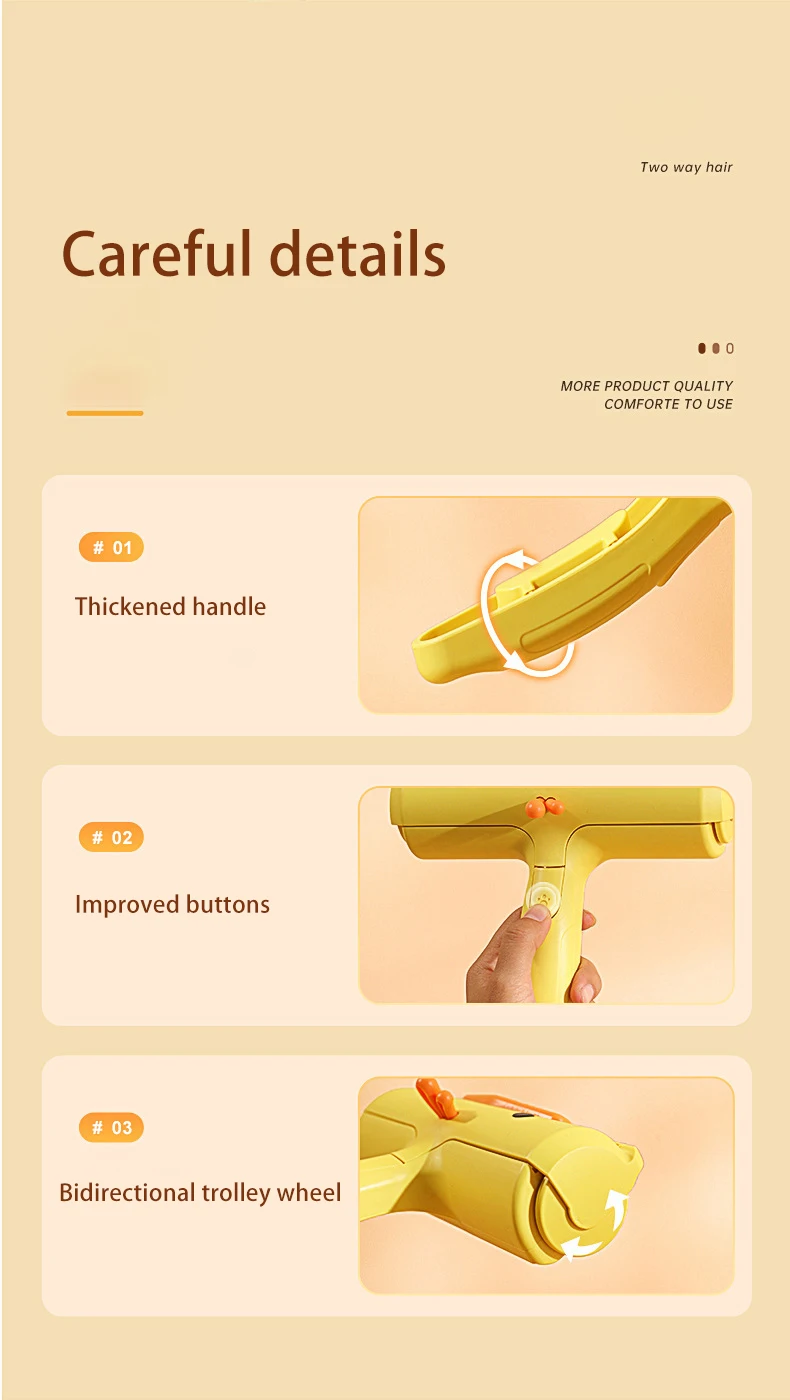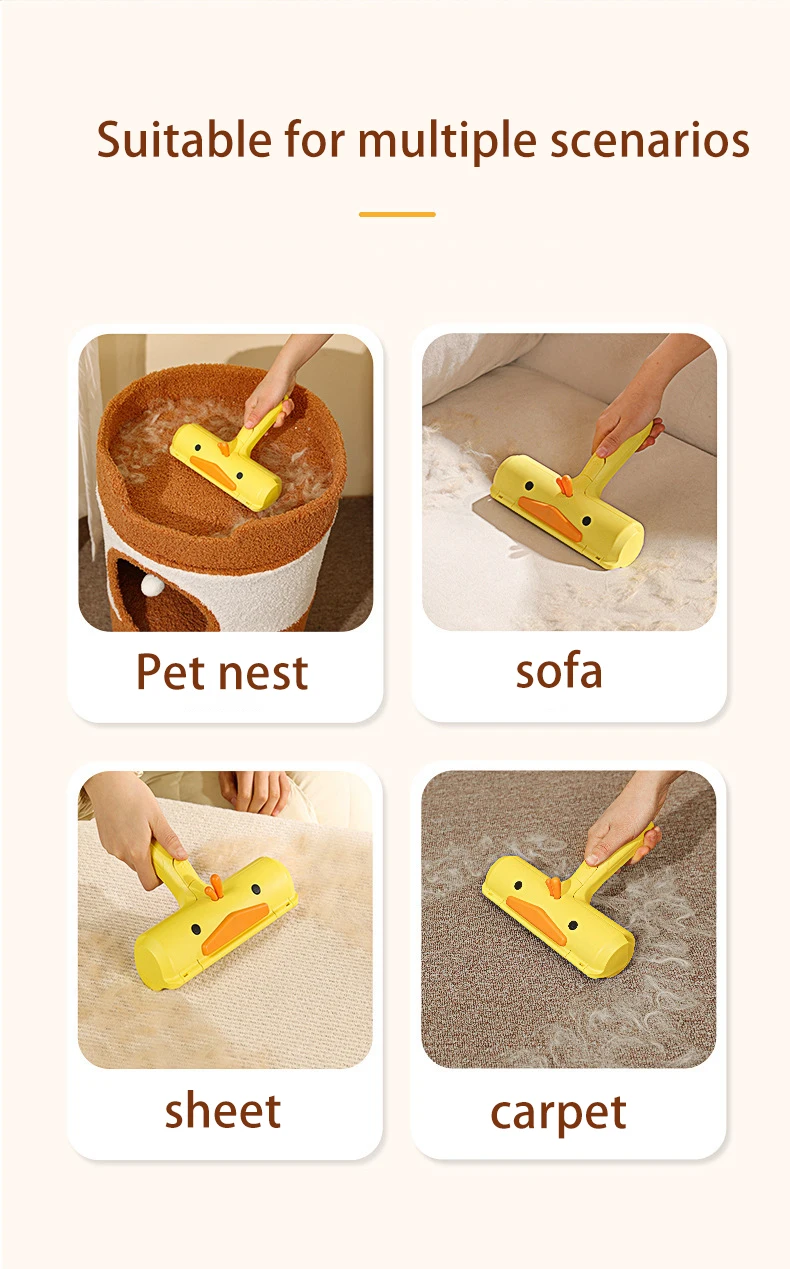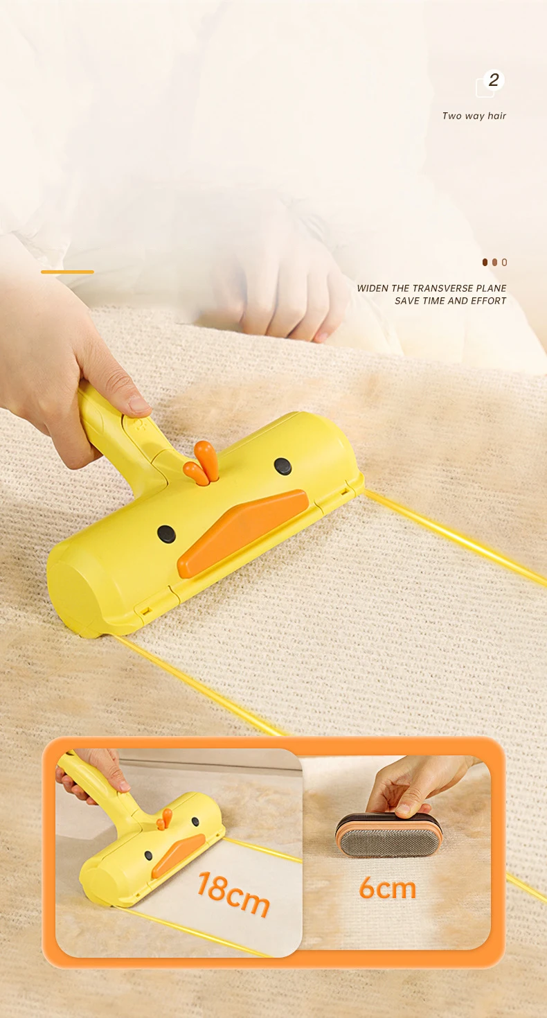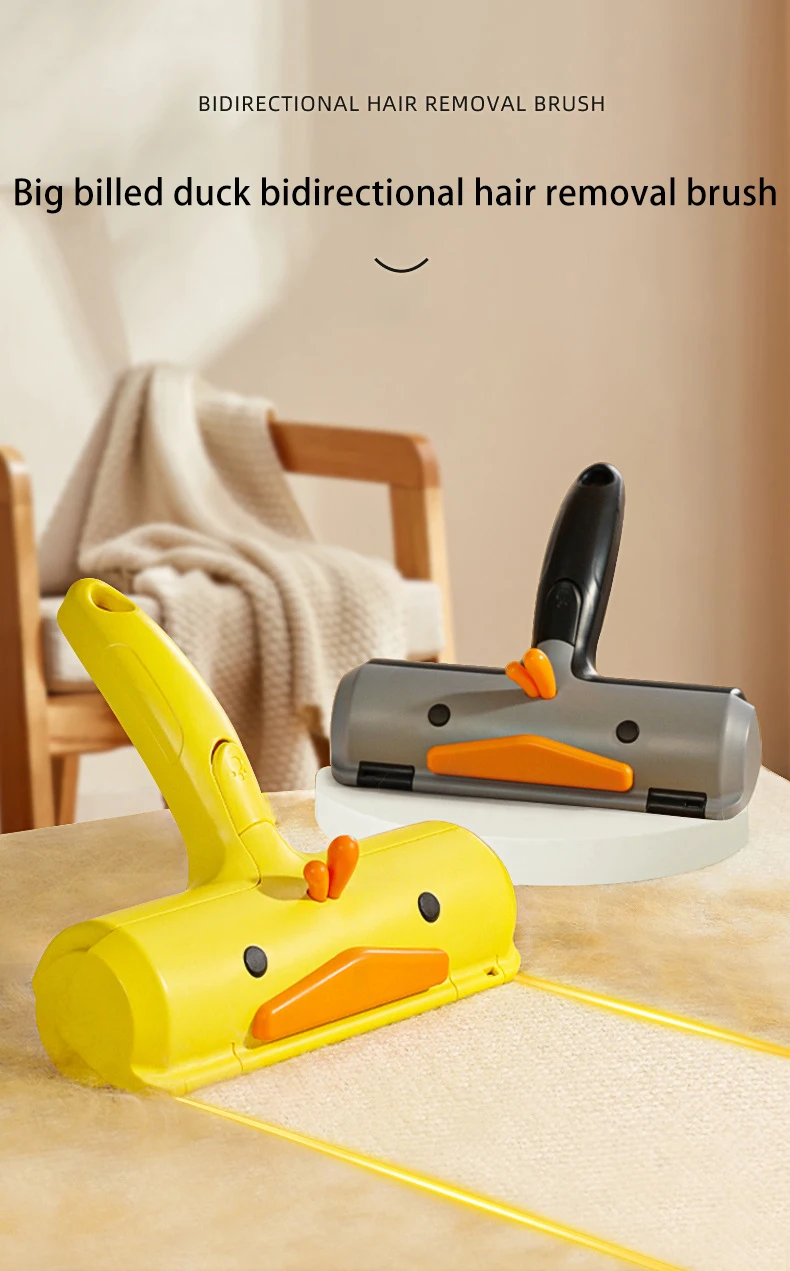 Rodillo de pegatina para pelo de mascotas, cepillo bidireccional para quitar el pelo, ropa, sofá, pegatina de limpieza, peine de pato amarillo, gato y perro