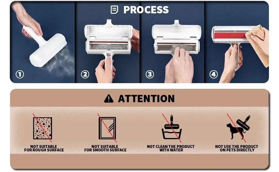 Conveniente-No se necesitan baterías ni fuente de alimentación para este removedor de pelo para perros y gatos. Simplemente enrolle esta herramienta removedora de pelusas hacia adelante y hacia atrás para atrapar el pelo y las pelusas en el receptáculo.