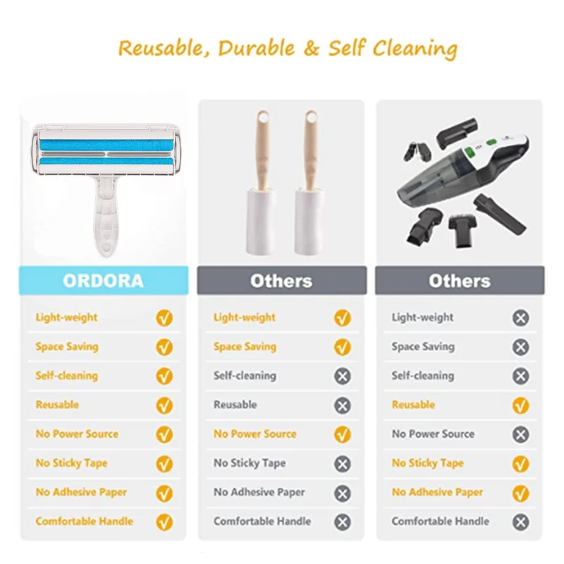 Pet Hair Remover admite el uso de una herramienta de cepillo removedor de pelusas de pelo profesional reutilizable, no se requiere cinta adhesiva ni papel adhesivo.