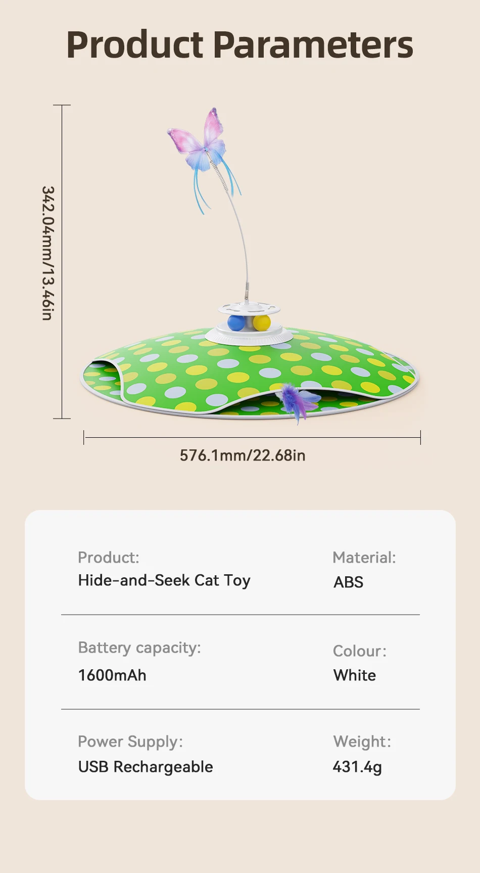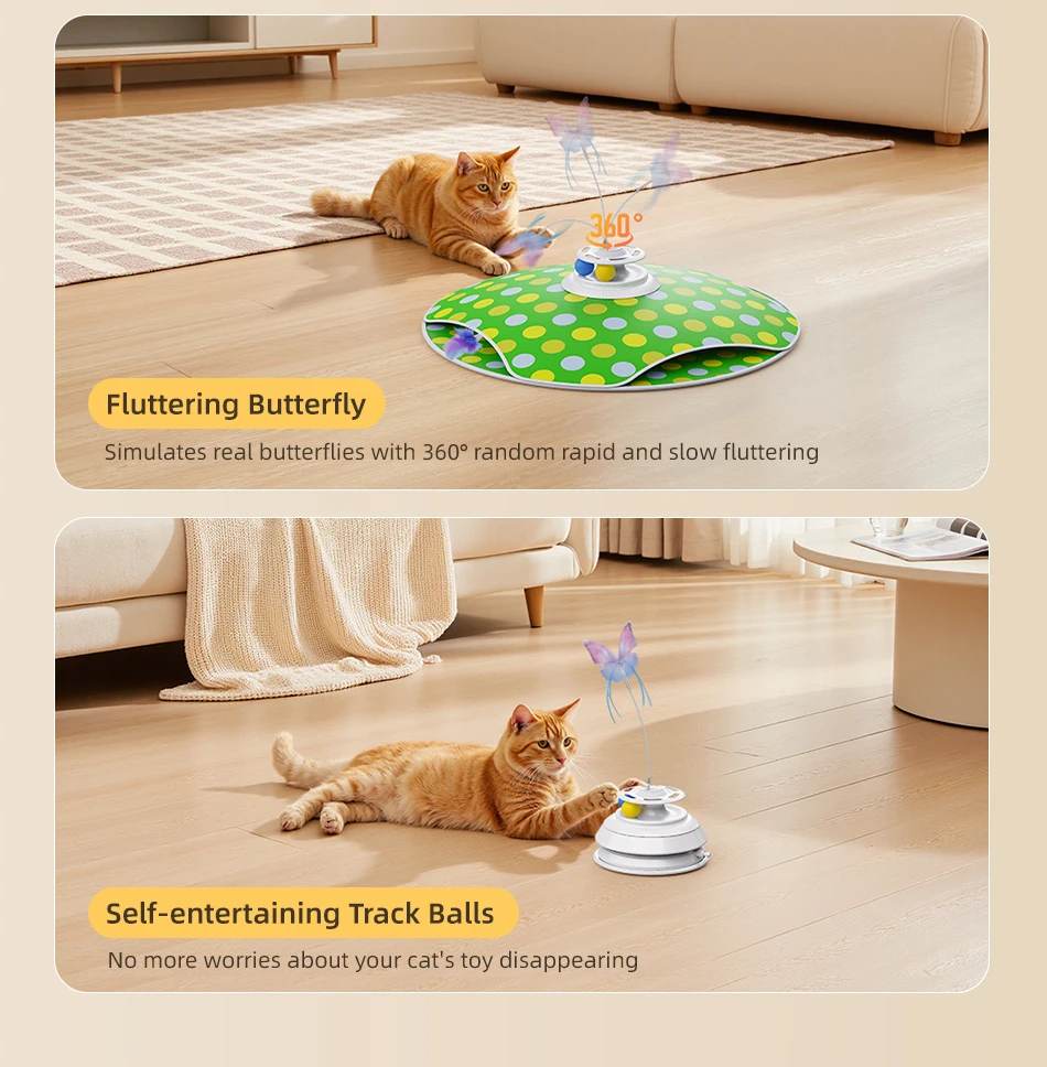 ของเล่นแมวอัจฉริยะ ROJECO ของเล่นแมวแบบซ่อนแอบและหาซ่อนพร้อมขนนกไล่ล่า ผีเสื้อกระพือ ลูกบอลติดตาม ของเล่นล่อแมว