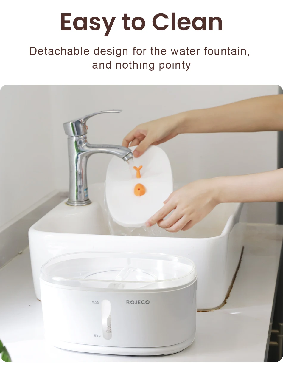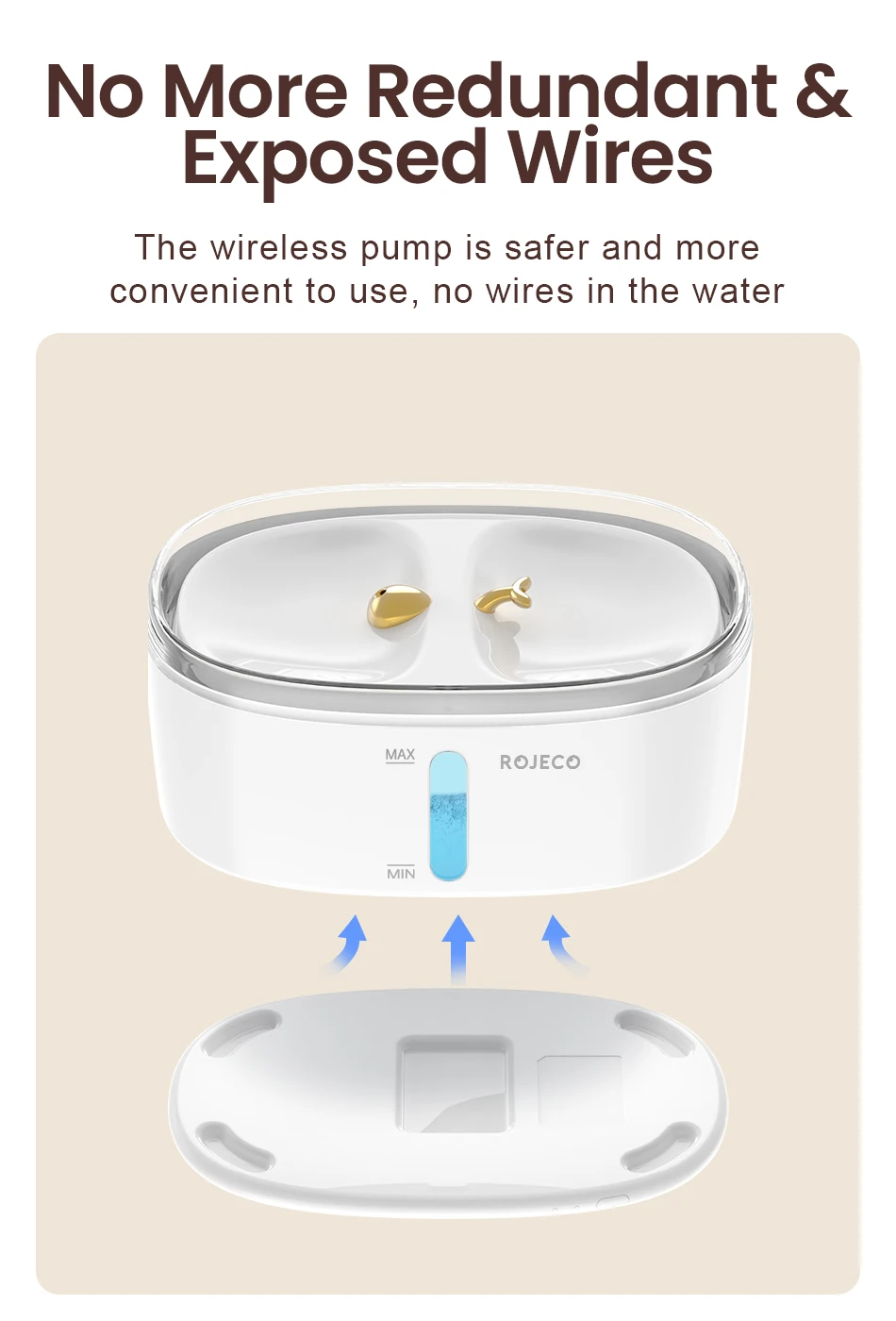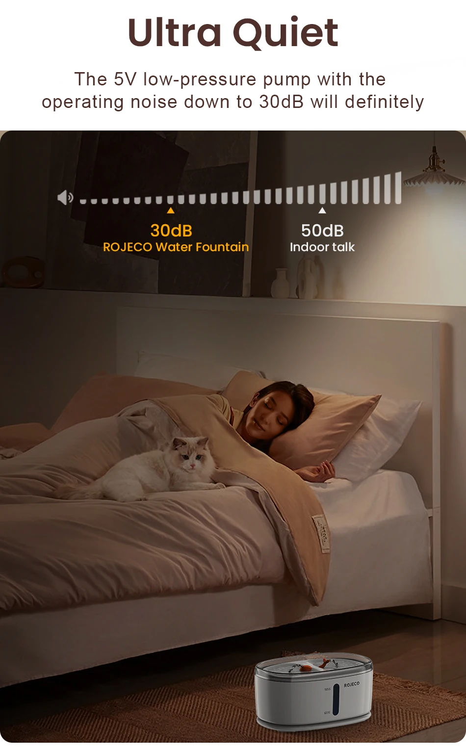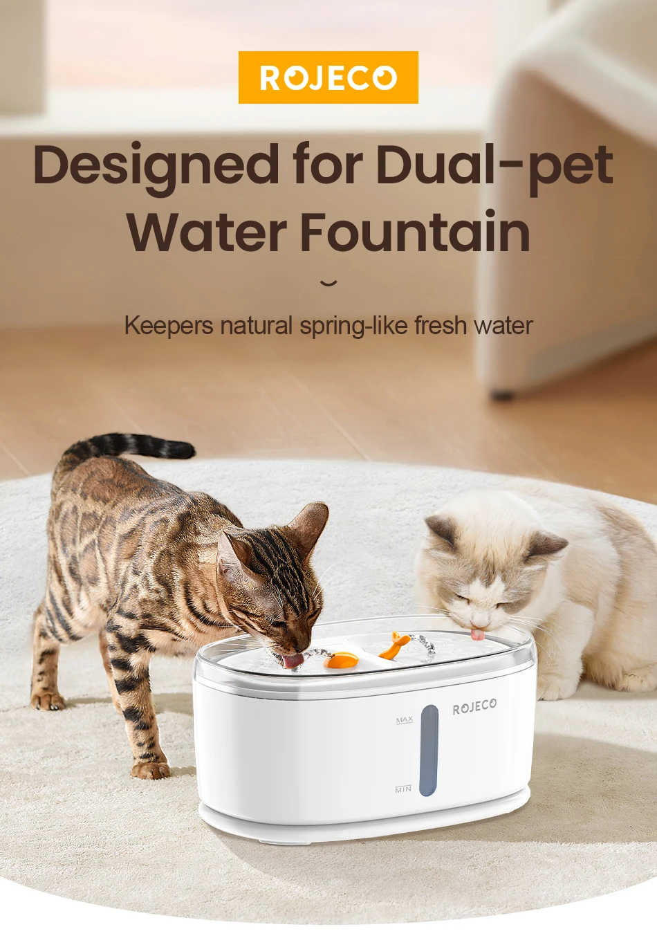 ROJECO 2.5L automático doble fuente de agua para mascotas dispensador de agua inteligente con filtro para 2 gatos bebedero de acero inoxidable para perros con bomba