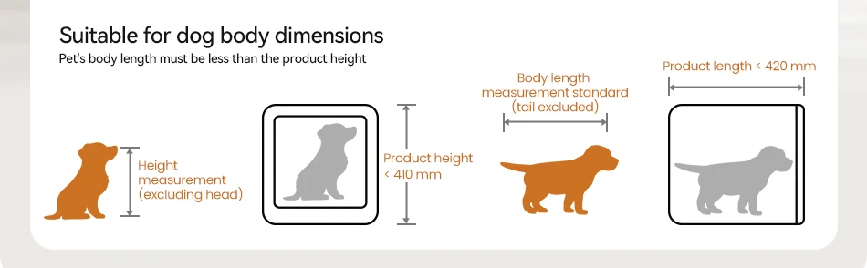 La longitud del cuerpo de la mascota debe ser menor que la altura del producto.