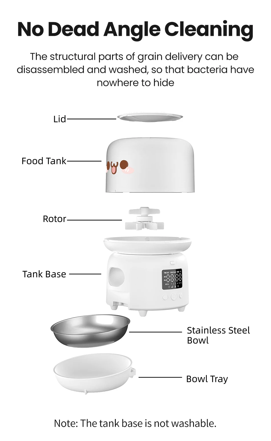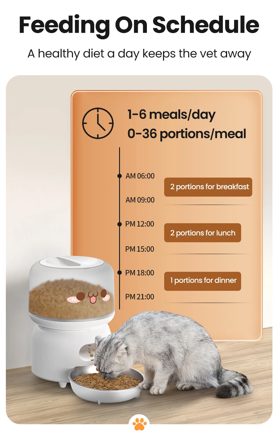 Dispensador de comida para gatos súper pequeño y práctico. También puedes desmontarlo y llevarlo de vacaciones porque es muy compacto cuando está desarmado, a diferencia de otros comederos. La configuración a través de WiFi está bien y es factible, pero extraño la opción manual para configurar cuando no quieres usar WiFi. Puedes elegir entre "manual" y "WiFi" para este modelo, pero "Manual sin WiFi" está faltando, por lo que se deduce una estrella.