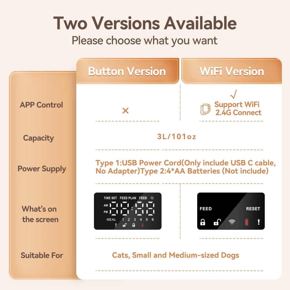 Diferencia:La versión WIFI se puede conectar a WIFI, vincular a la aplicación y se puede controlar de forma remota, pero la versión de botón No. Y las pantallas de los dos productos serán algo diferentes.