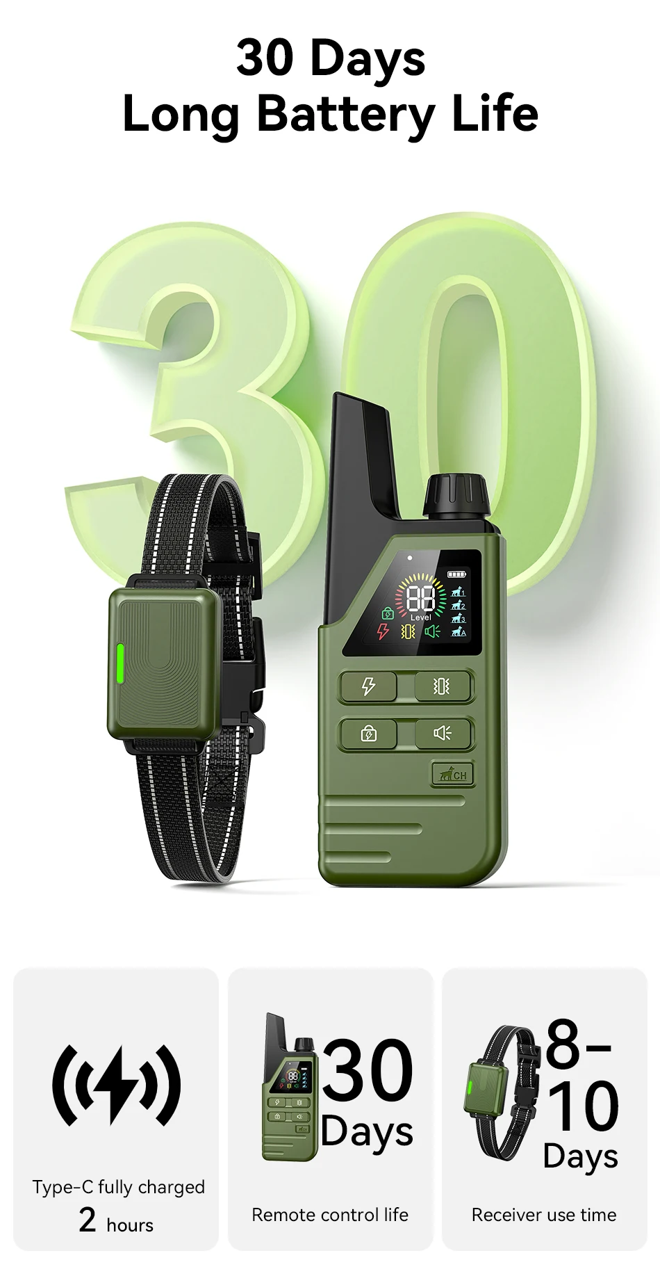ROJECO Collar eléctrico de entrenamiento para perro, dispositivo antiladridos, recargable e impermeable, Control remoto