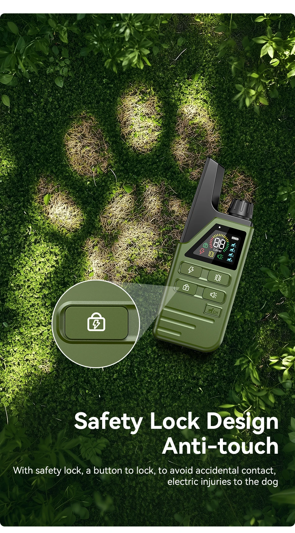 2. With safety lock, a button to lock, to avoid accidental contact, electric injuries to the dog