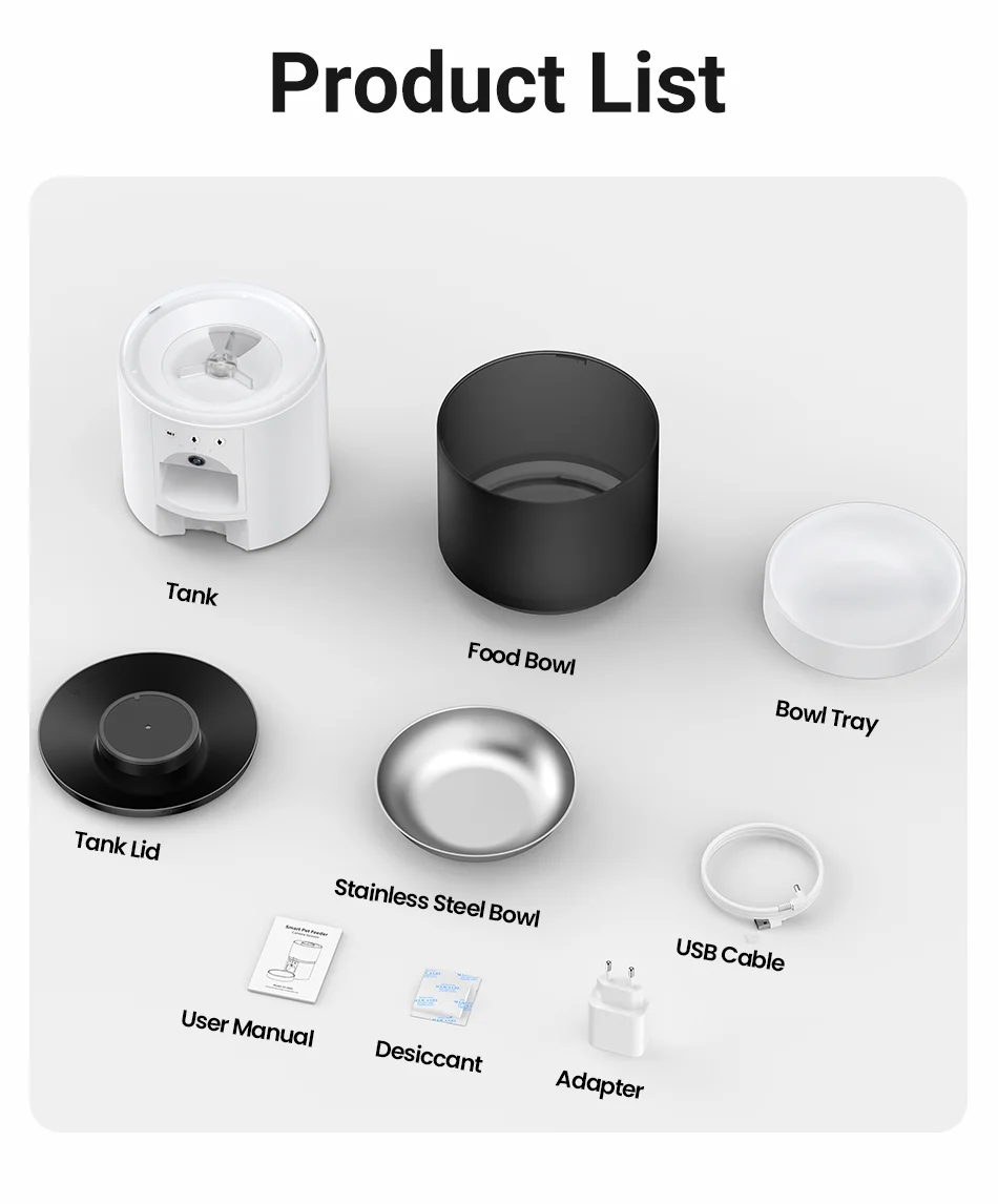 1.Vídeo y voz en tiempo real 2 millones de píxeles HD, 120°Lente gran angular en cualquier momento para capturar el lindo momento de la mascota.