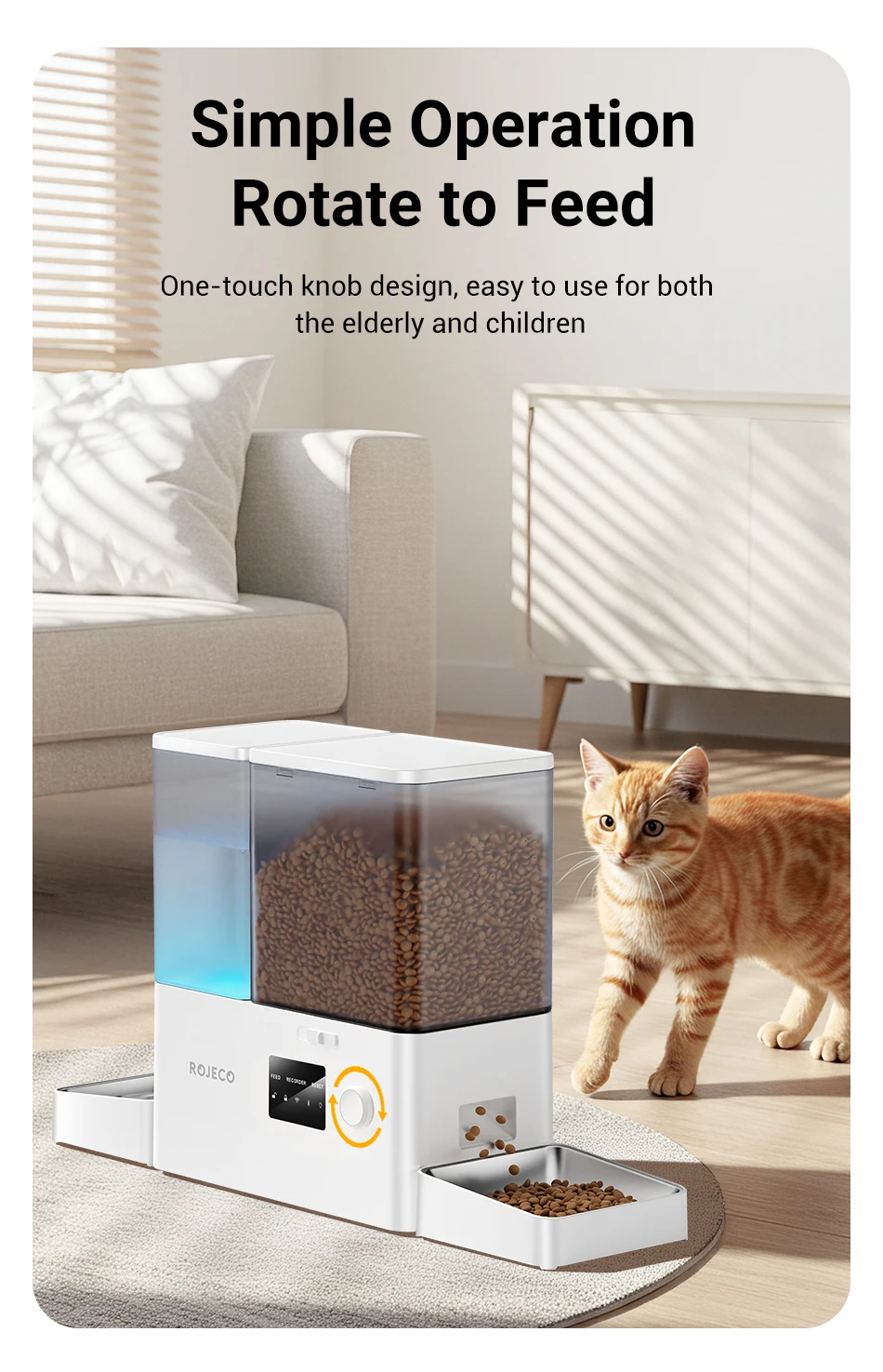 7.Operación simple Gire para alimentar.Diseño de perilla de un solo toque, fácil de usar tanto para personas mayores como para niños.
