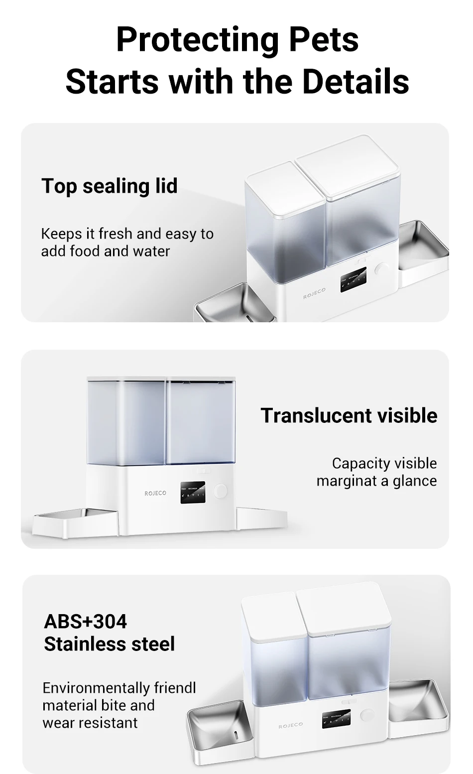 3.Alimentación y bebida 2 en 1.Ya sea que estés en casa o no, puedes asegurarte de que tus amigos peludos siempre tengan comida y agua fresca.