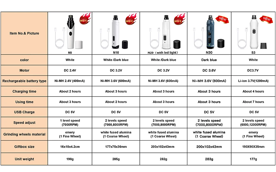 Elija el puerto y la potencia adecuados según el tamaño y la dureza de las uñas de su mascota para perros, gatos, conejos y pájaros, etc.