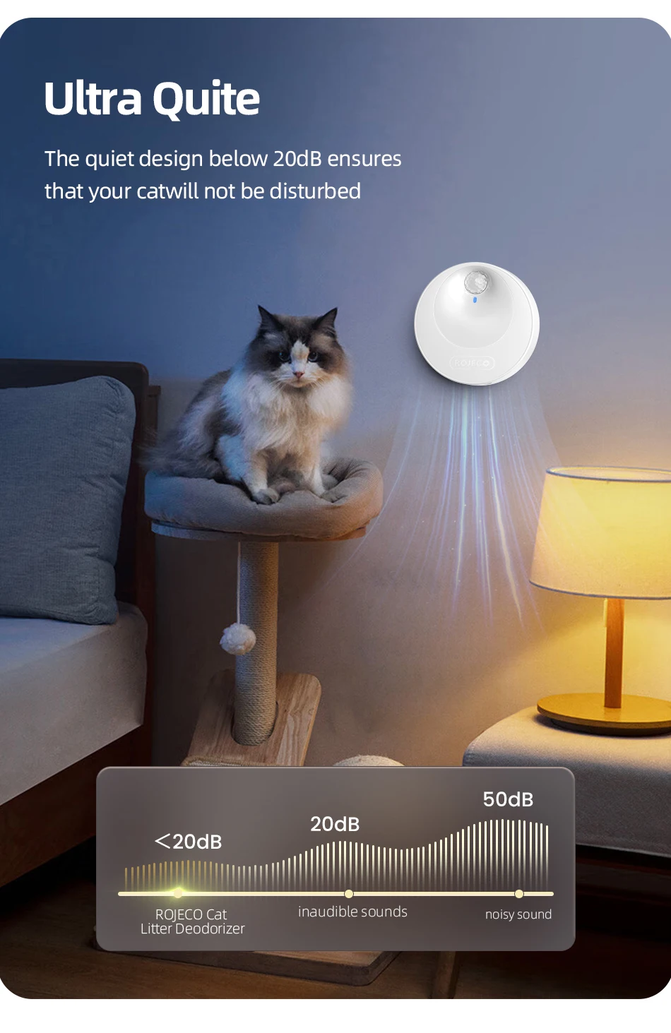 El diseño silencioso por debajo de 20 dB garantiza que su gato no se verá molestado
