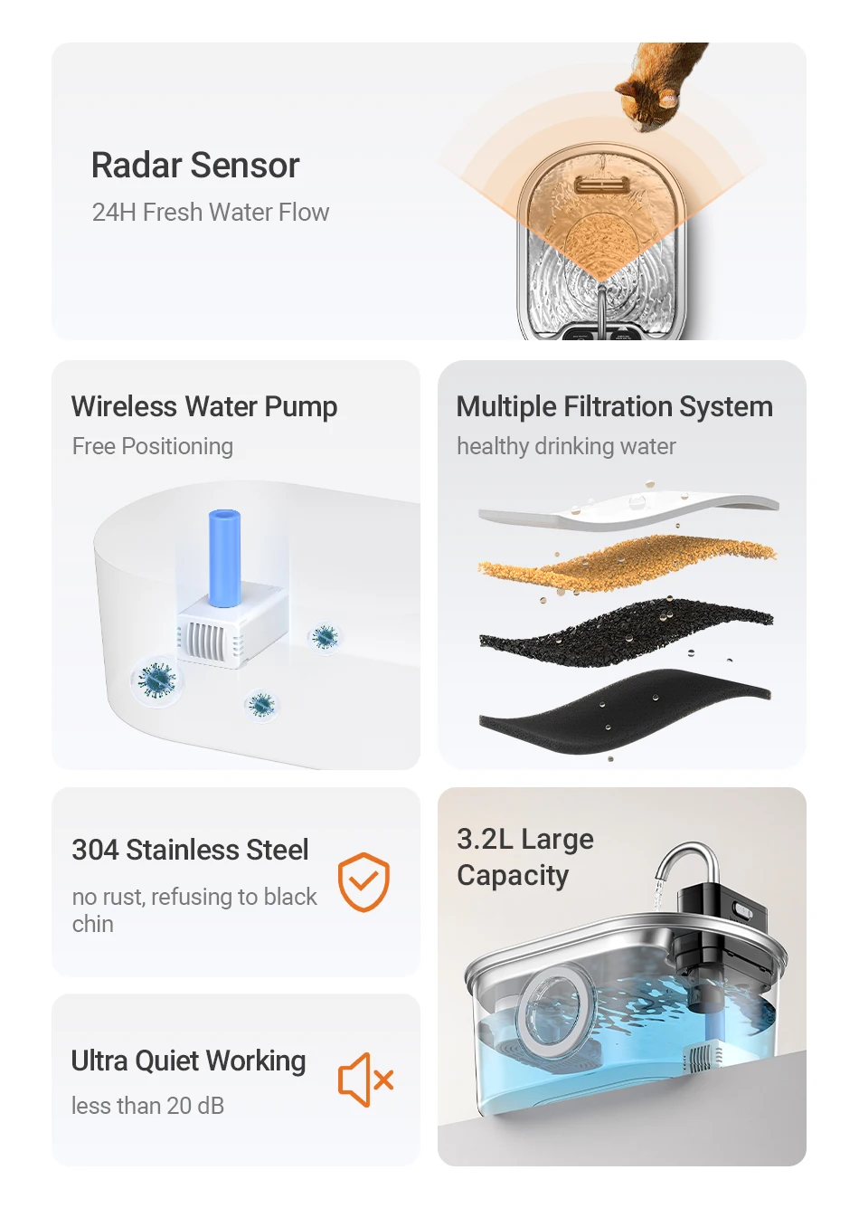 Funciona perfectamente, cuenta con un sensor que detecta la proximidad de gatos y activa la bomba. Recomiendo este producto y también al vendedor.