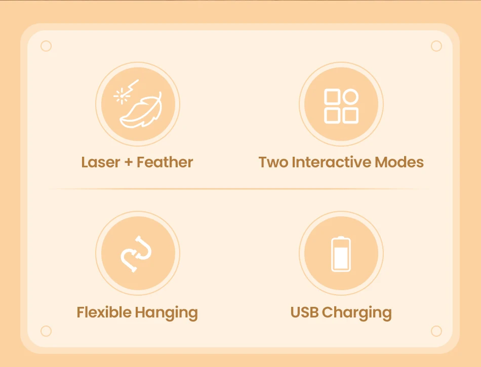 El artículo es bueno. A mis gatos les gusta. Lo único que no es bueno es cómo se coloca el puntero láser. Cuando lo cuelgas en el marco de la puerta, siempre ilumina el interior de la puerta, realmente lo intentamos todo, pero eso es solo una mierda. La parte en sí es buena; Pero no volvería a pagar ese precio porque definitivamente no valía la pena.