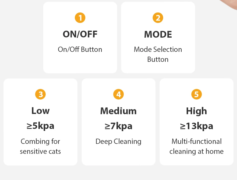 Oh, lo compré para el gato, pero no se acerca debido al ruido. El ruido es aproximadamente el mismo que el de una aspiradora normal. Tendré que esforzarme mucho para coquetearlo con dulces. El nivel de ruido del cortapelos está bien, pero parece estresante para el gato.