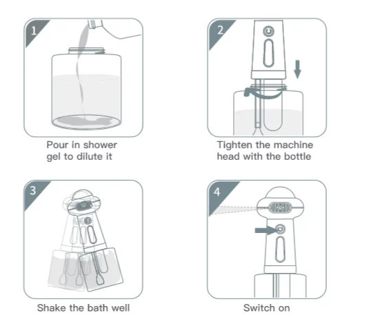 3.Agite bien el baño antes de usarlo, el efecto de espuma es