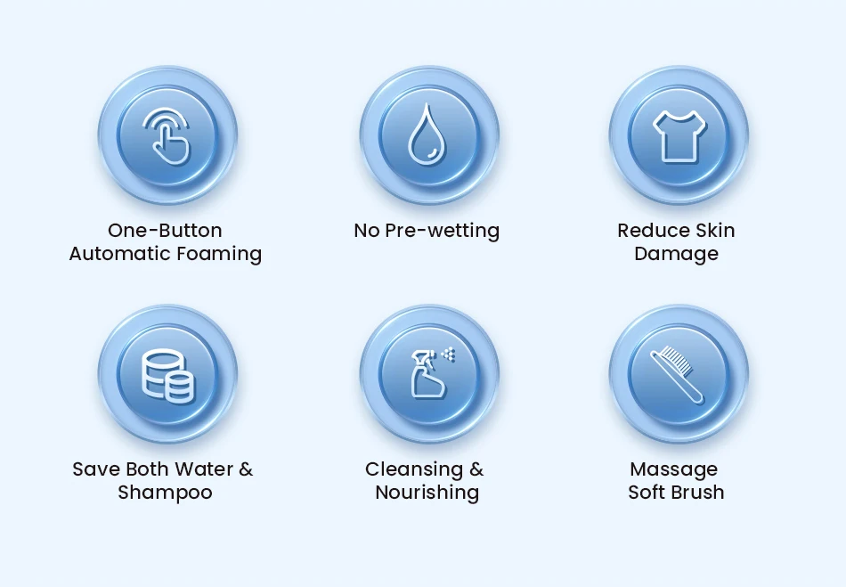 Un botón para comenzar al baño, salida automática y uniforme de burbujas, más conveniente