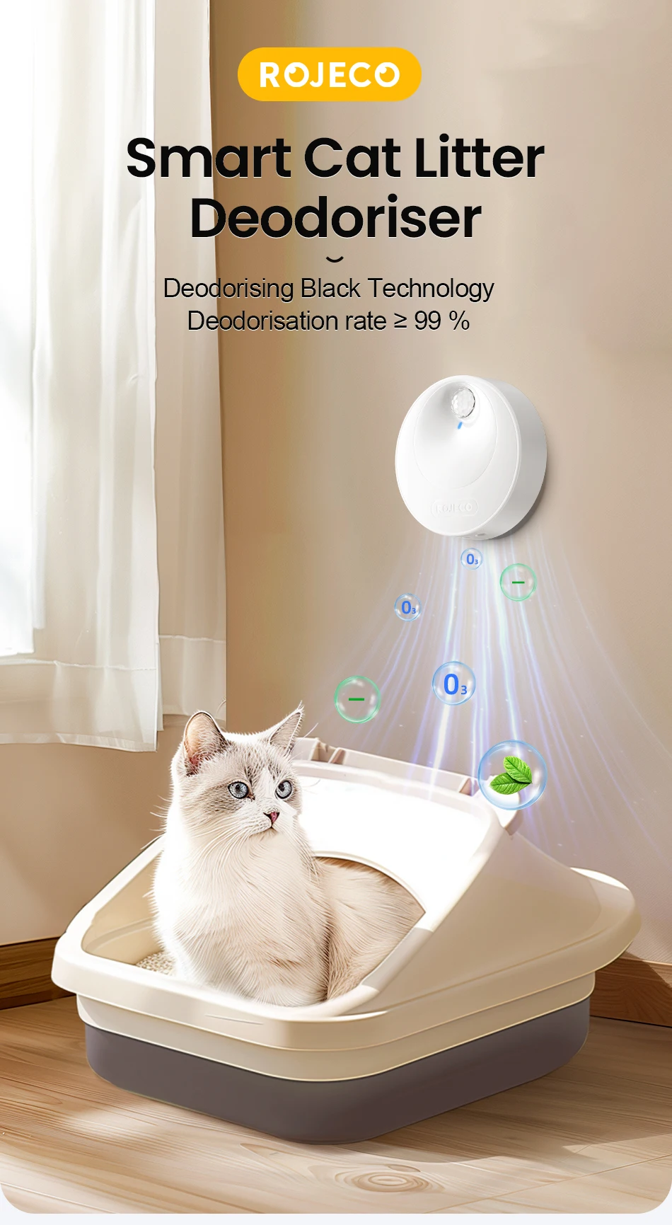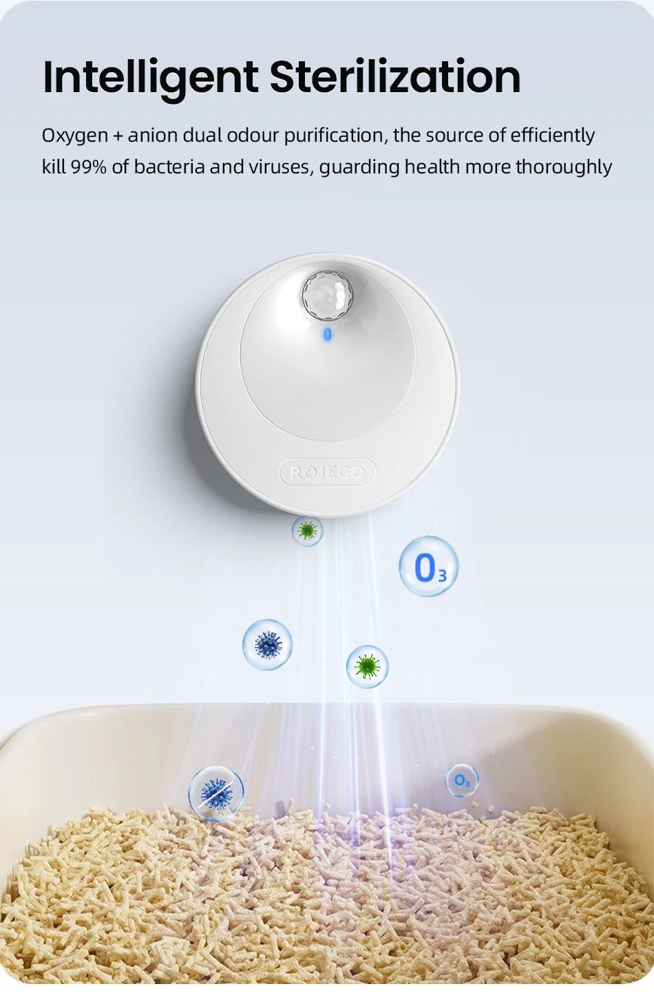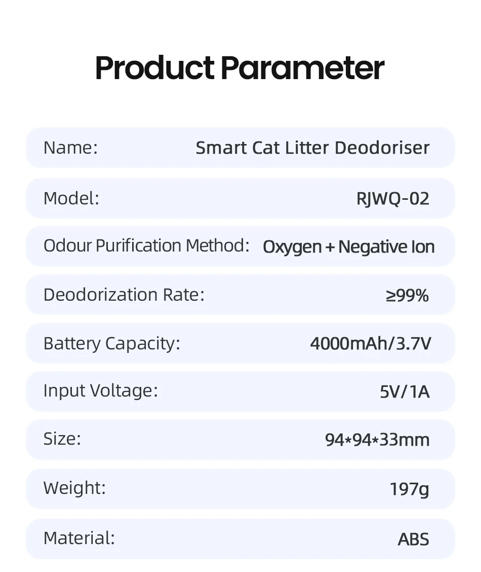Llegó completo y relativamente rápido. Funciona bien. Menos olores en la caja de arena para gatos. El ruido es muy bajo, pero si tu gato es muy sensible (como el mío), quizás le asuste un poco. Excelente, no es tóxico para humanos ni para mascotas, a diferencia de otros.