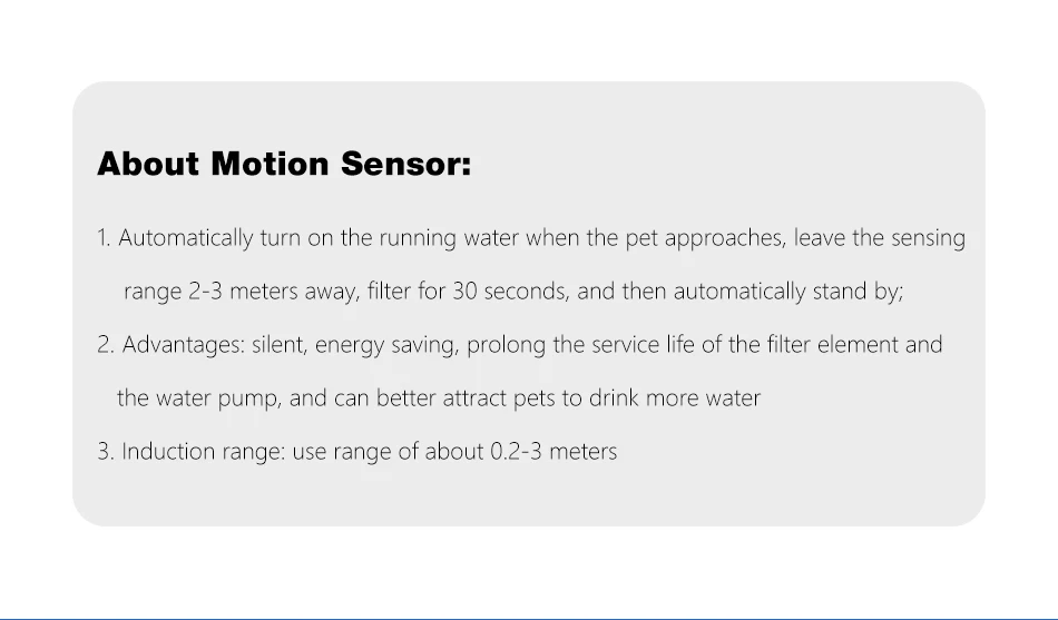funciona excelente, detecta movimiento a 4 metros, llego con todo lo necesario para instalarlo o integrarlo al bebedero.