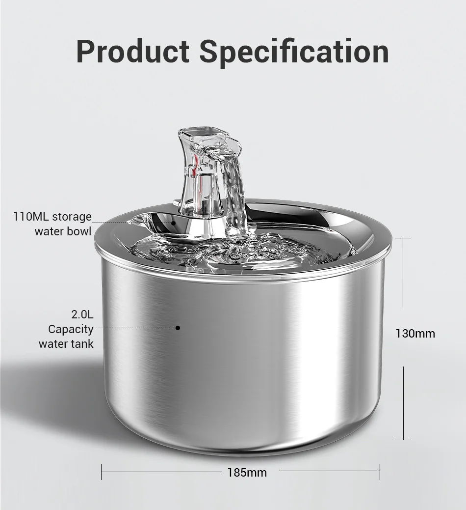 ROJECO Stainless Steel Pet Water Fountain Automatic Water Dispenser For Cats Smart Drinking Fountain With Filters Dogs Drinkers
