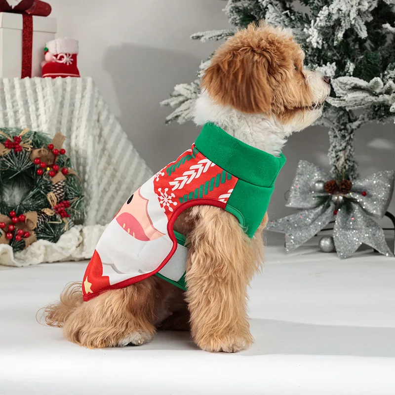 Rojo/Verde, Sin Mangas, Tallas S–XL para Perros Pequeños/Medios Chaleco navideño para Perros de Papá Noel Polar cálido, Chaqueta para Mascotas con Estampado de Dibujos Animados,