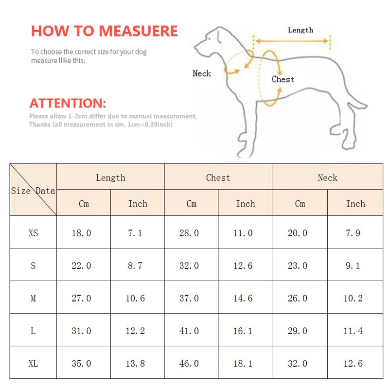 1. Por favor, compruebe las medidas de su mascota para asegurarse de que la ropa se ajuste a las mascotas antes de realizar el pedido (1 pulgada=2,54 cm)