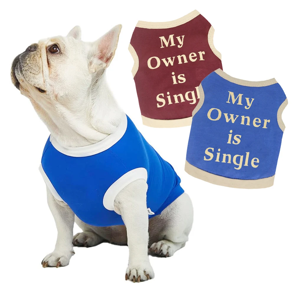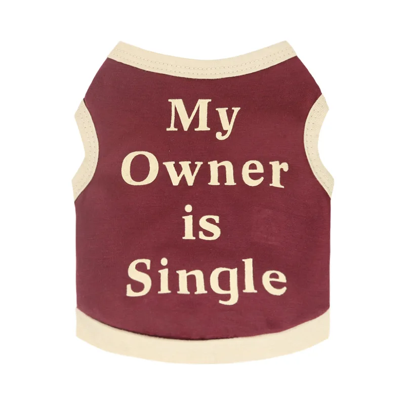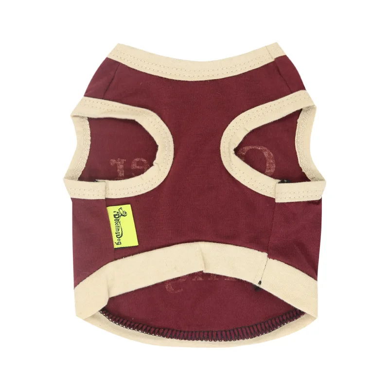 Ropa acogedora sin mangas para perros, camisa de algodón suave y transpirable para perros con estampado de letras, camiseta sin mangas para razas pequeñas, color rojo vino