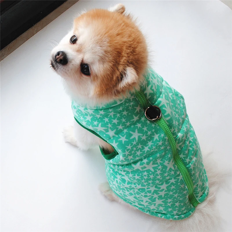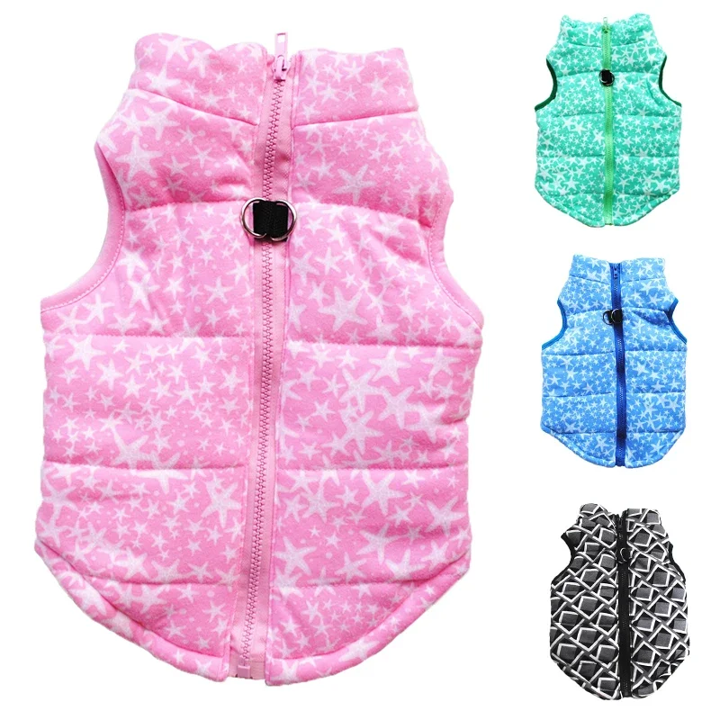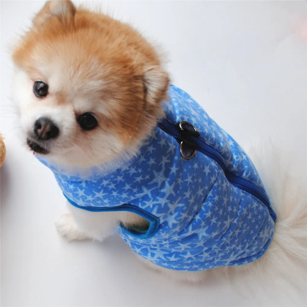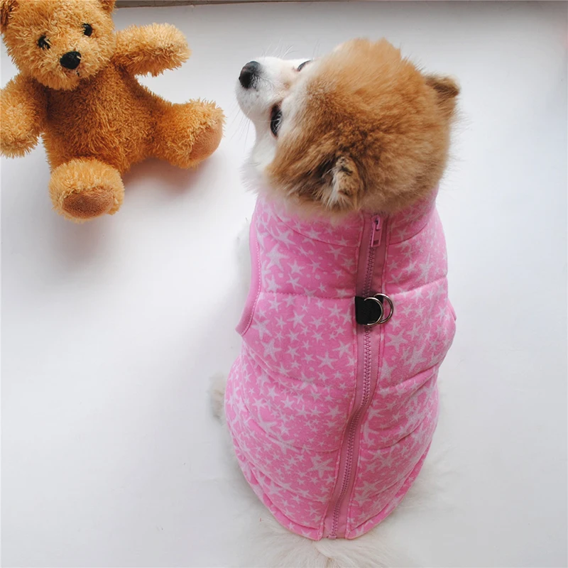 Ropa de algodón para perros pequeños, chaqueta de invierno con estampado de estrellas para perros con anillos, chaleco de Chihuahua, disfraces de Pug para mascotas, ropa de Bulldog Francés