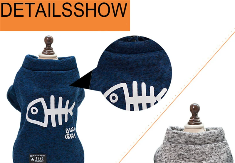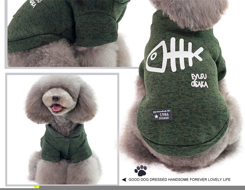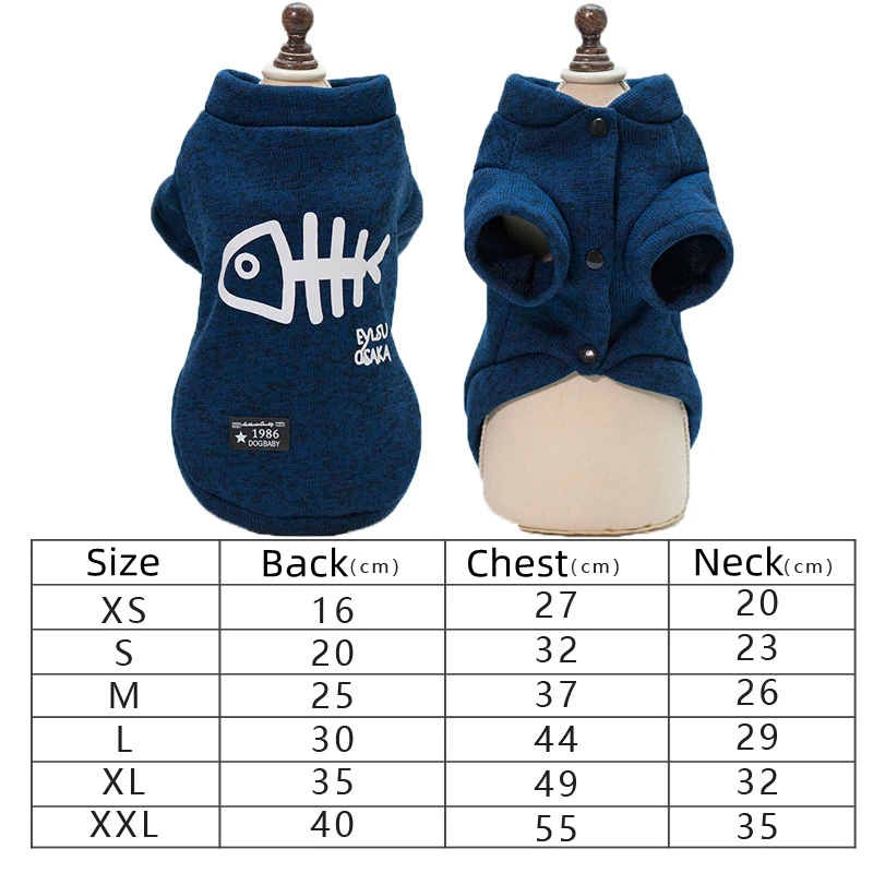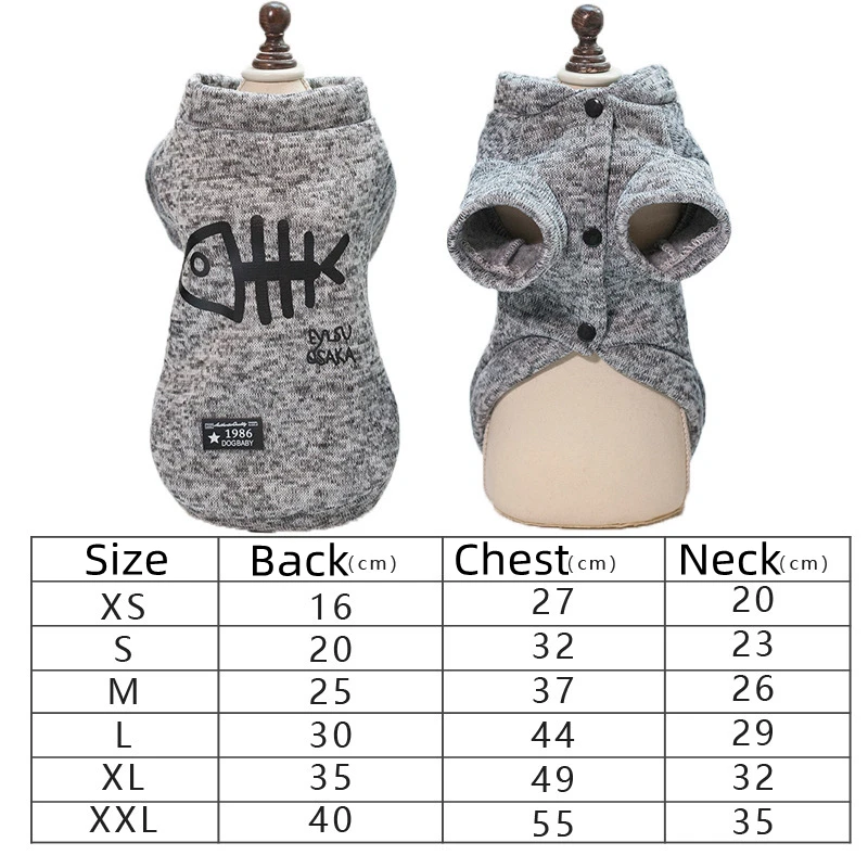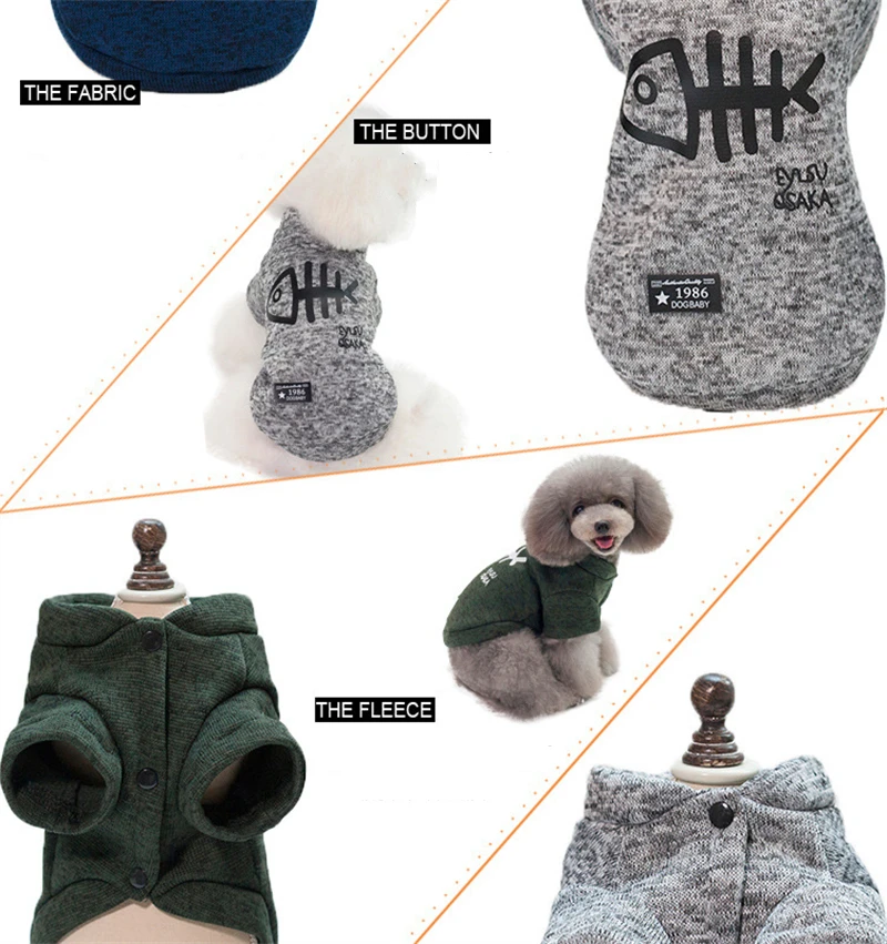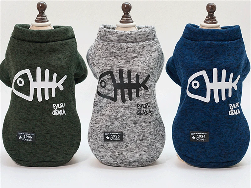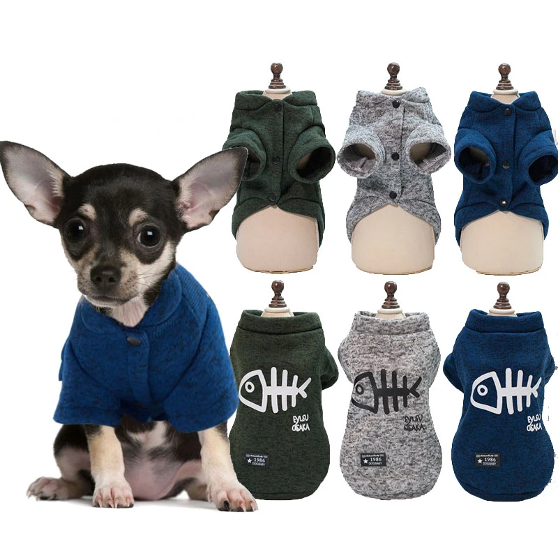 Perros pequeños Gatos Acogedor Algodón Hueso de pescado Estampado Ropa para mascotas para cachorro Perro Gato Sudadera con capucha Abrigo Yorkies Chihuahua Sudadera Ropa para mascotas