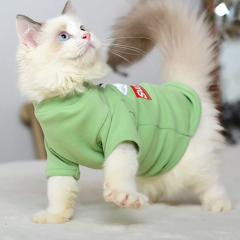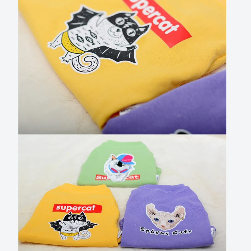 Ropa de algodón para gatos, sudaderas con capucha de dibujos animados, disfraces de gato, jersey de gatito, cachorro, puente de perro, suministros de Sphynx plegables escoceses