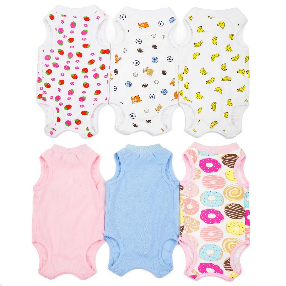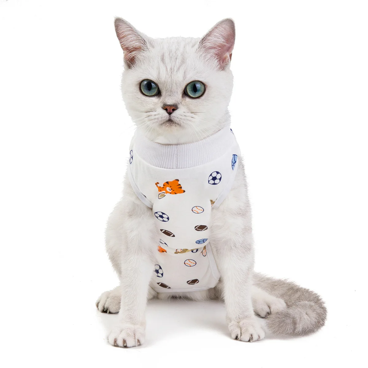 Traje de recuperación de gatos de algodón transpirable, venta al por mayor, ropa para gatos, monos sanitarios para gatos femeninos, ropa después de la cirugía, antidesgarro, lamiendo para mascotas, 5 uds.