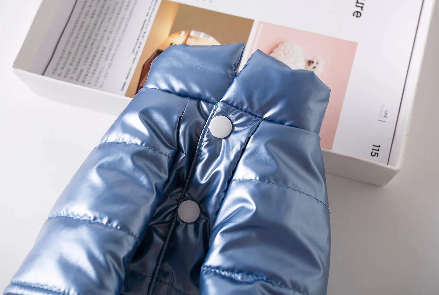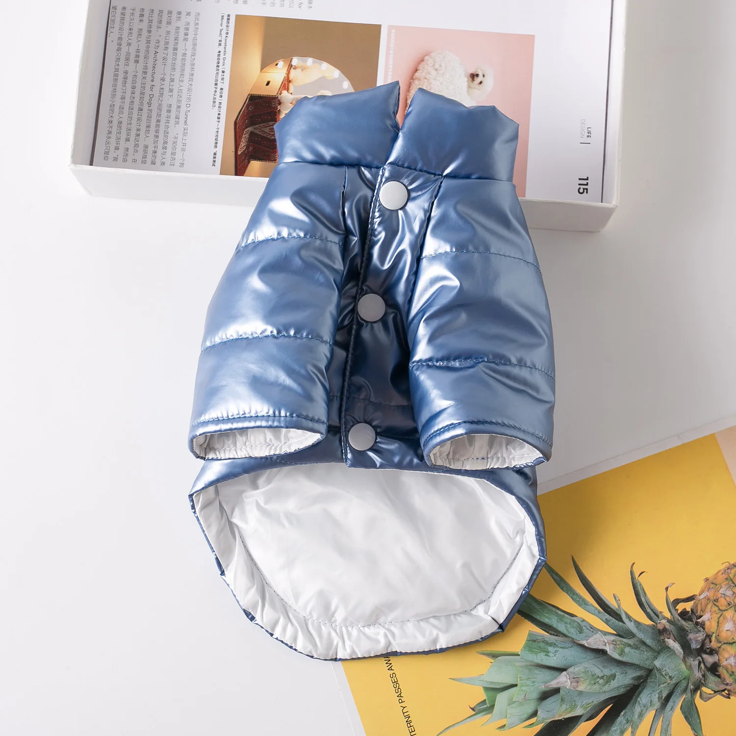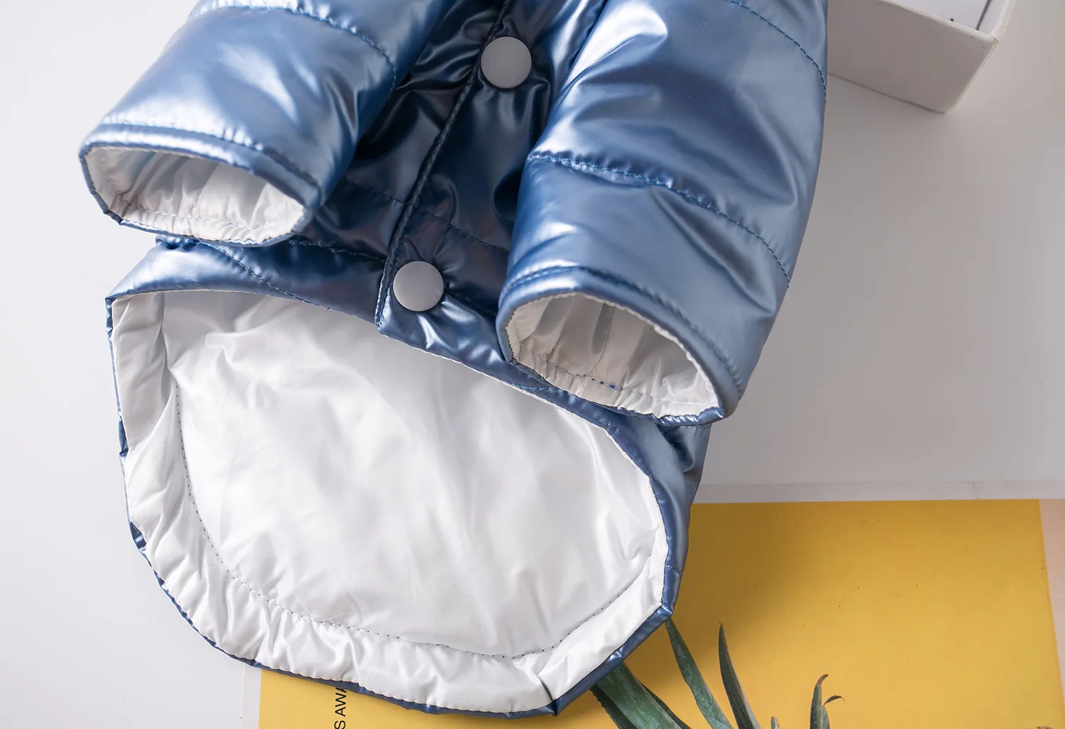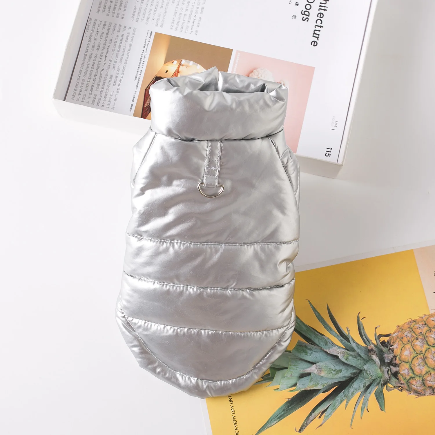 Ropa de algodón impermeable para mascotas, ropa para perros, calidez de invierno, espacio grueso, ropa de algodón de tracción de dos patas plateada, ropa para cachorros