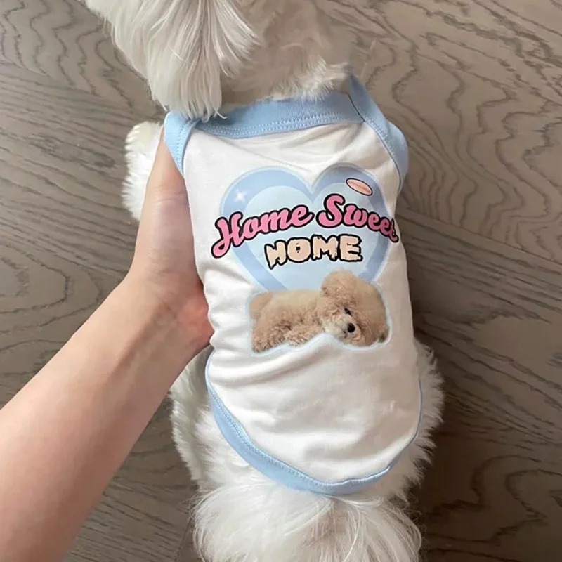 Ropa de algodón para mascotas, chaleco de verano maltés con tirantes, chaleco con estampado de letras para mascotas, camiseta bonita para perros pequeños, ropa para perros con patrón de dibujos animados