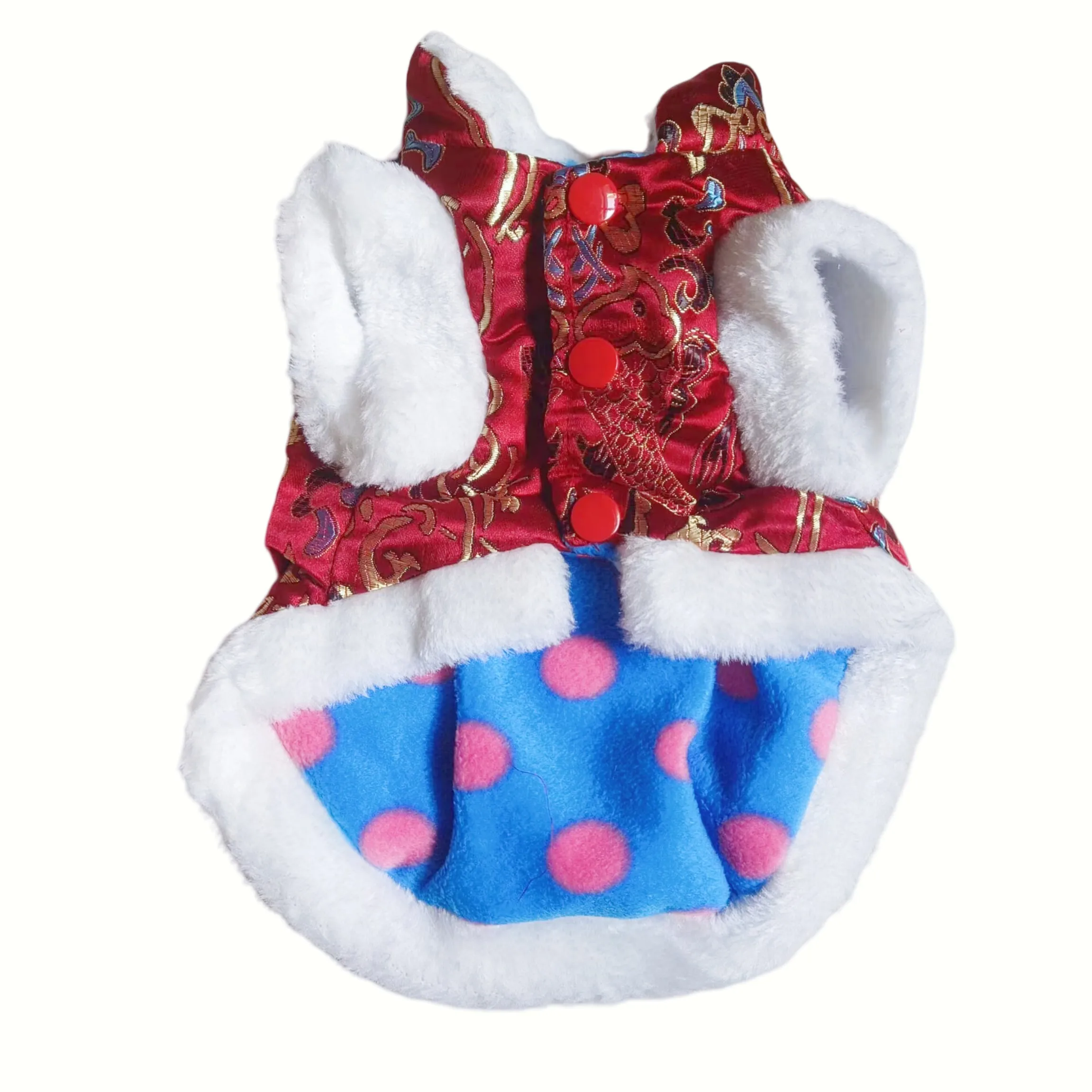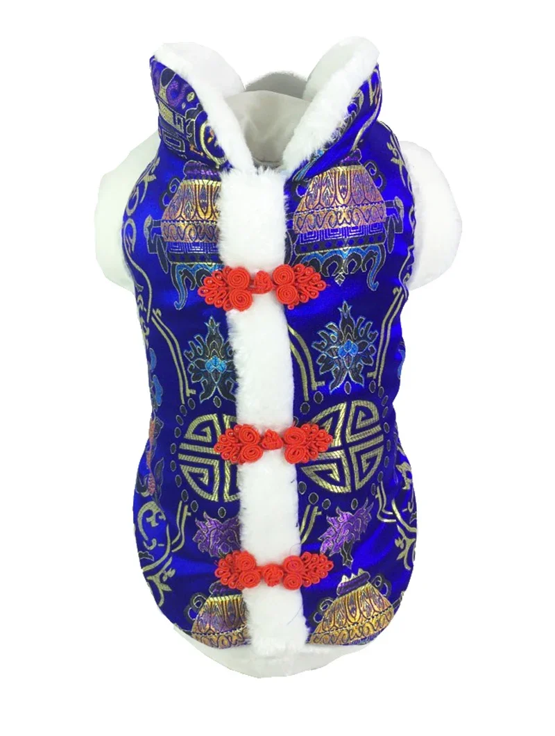 Este abrigo está hecho de tela de seda para el Año Nuevo,Diseño Tangzhuang aún más especial,vmuy cálido en los días de invierno, alta calidad y tamaño de pecho ajustable para que cada raza disfrute
