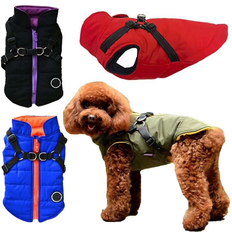 Ropa para perros con arnés Chaqueta para cachorros Abrigo para perros a prueba de viento Ropa acolchada Chihuahua Bulldog francés Yorkie Disfraz Suministros para mascotas
