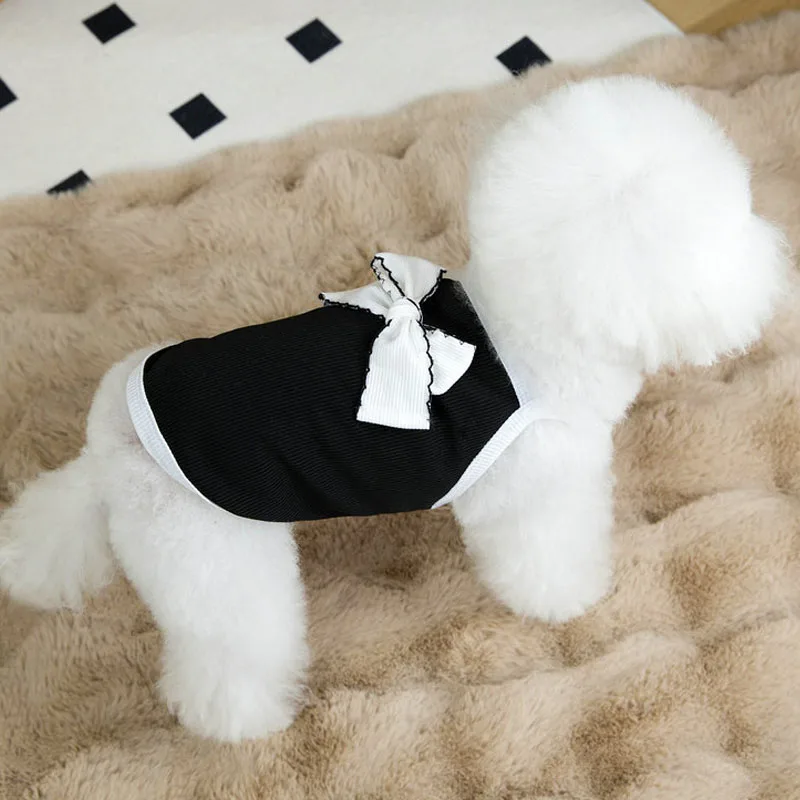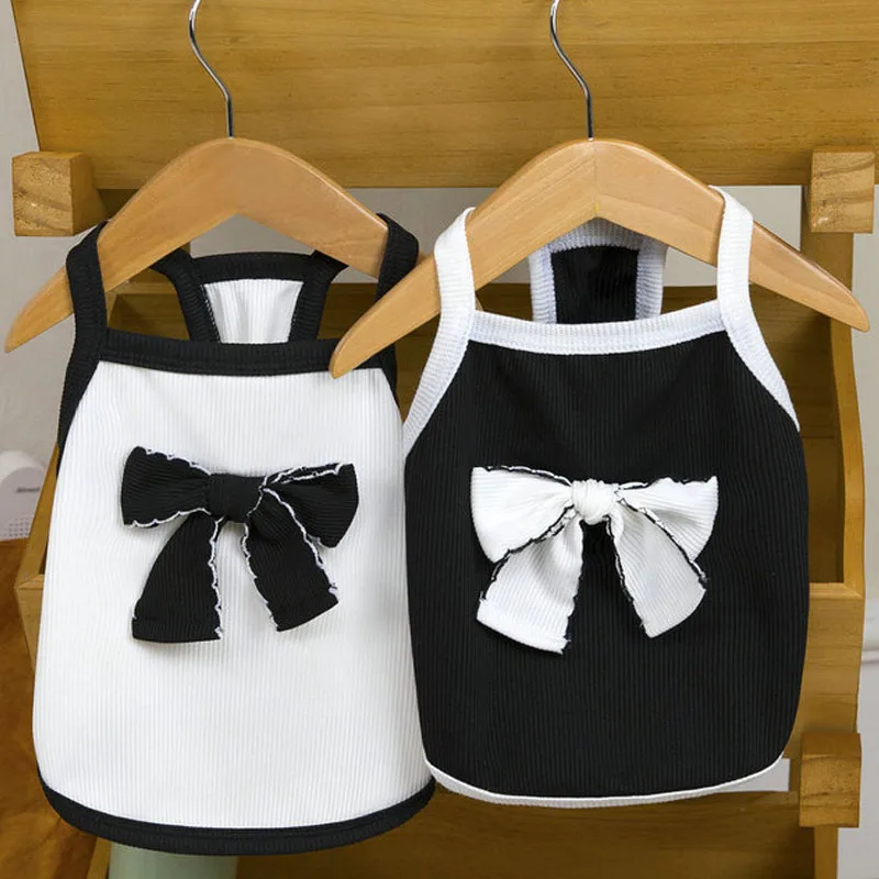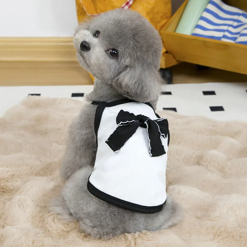 Ropa para perros con lazo blanco y negro, chaleco con capucha de verano, ropa para cachorros pequeños, Chiwawa Yorkie, gatito mascota, camiseta sin mangas para perros XS