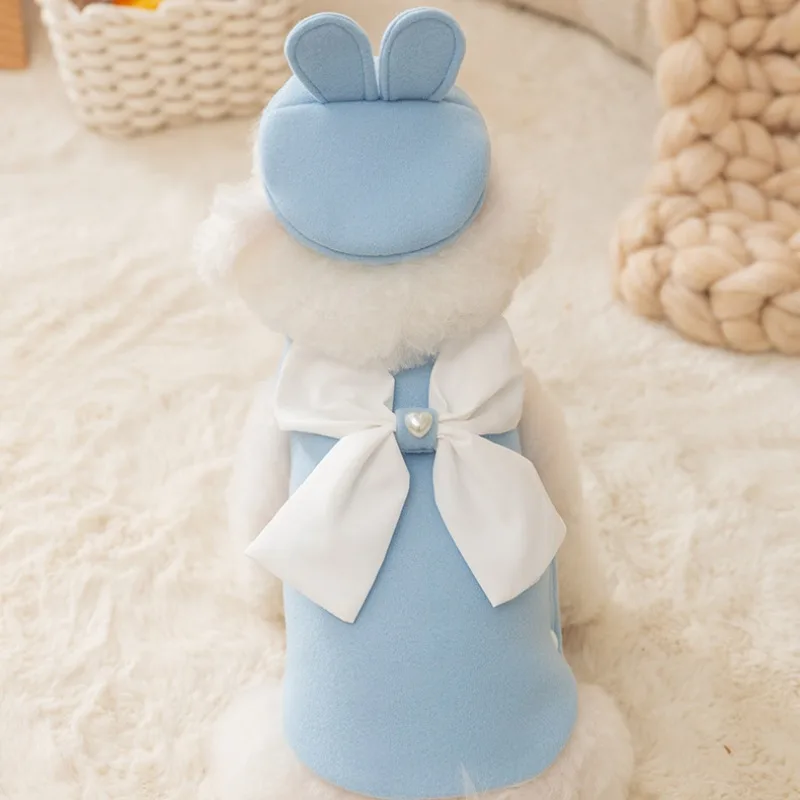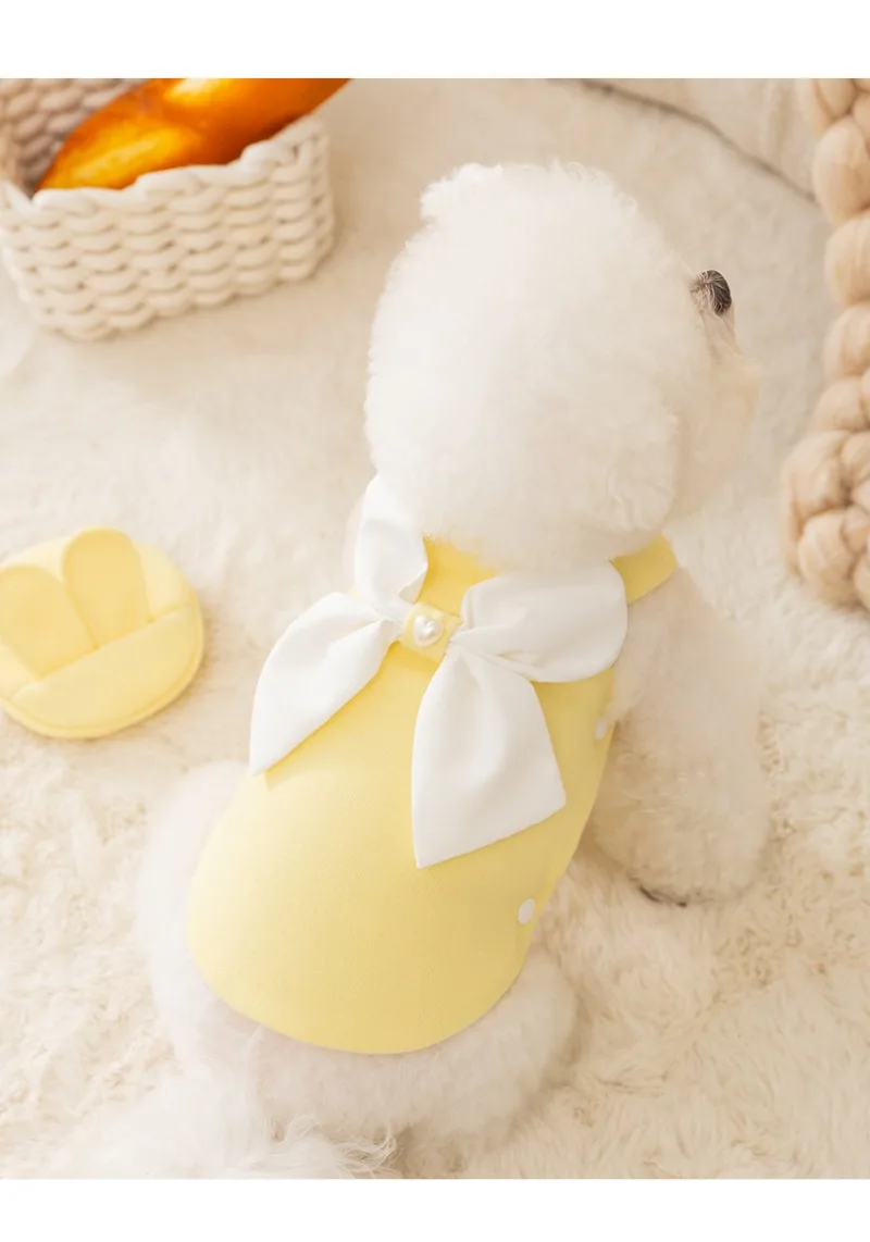 Ropa bonita para cachorros, ropa para perros de otoño e invierno, estilo princesa, vestido con tirantes y lazo grande para perros pequeños, falda, ropa para perros y gatos de peluche