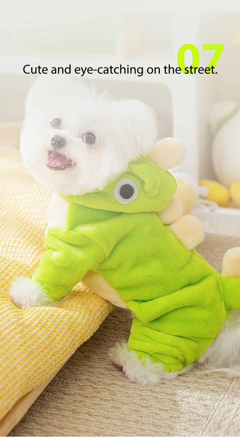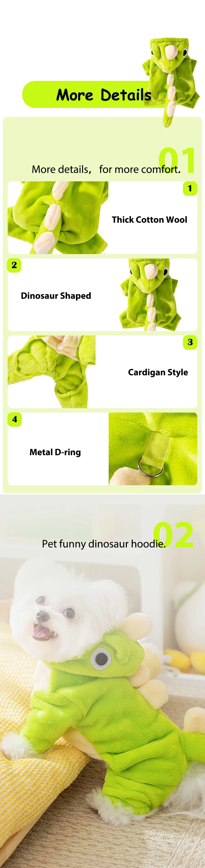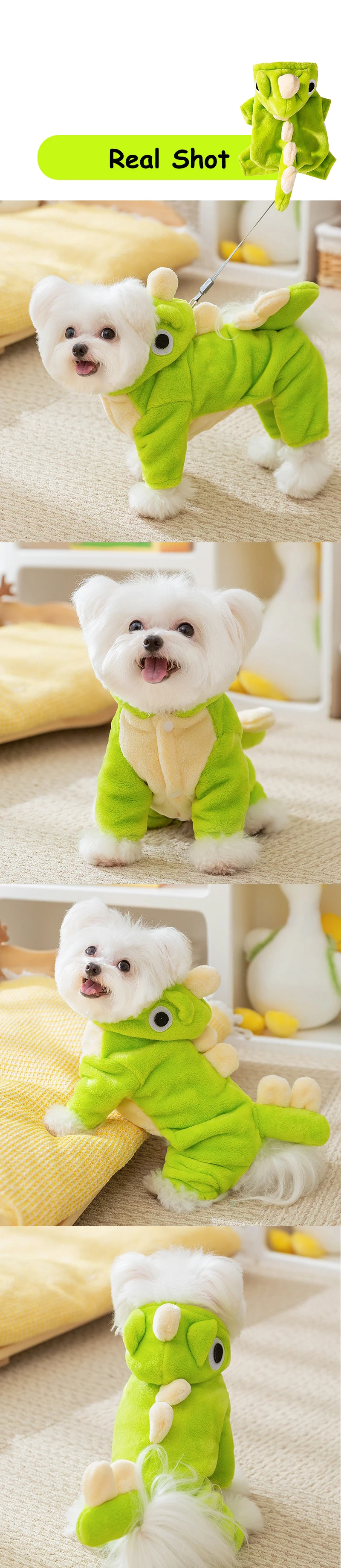Ropa bonita de dinosaurio para mascotas, ropa de invierno para perros pequeños y medianos, monos de franela suave y grueso para gatos, sudaderas para cachorros de York, Cosplay de Año Nuevo