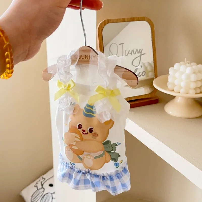 Ropa bonita de oso para mascotas Ins, ropa fresca de verano, camiseta sin mangas transpirable para perros, chaleco para cachorros, ropa estampada de oso de seda helada para gatos y perros