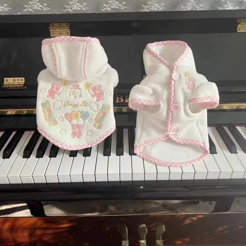 Ropa bonita para perros, chaqueta con capucha bordada de felpa, oso de peluche, Sudadera con capucha de invierno, traje grueso para perros, chaleco, sombrero blanco de oso para perros pequeños