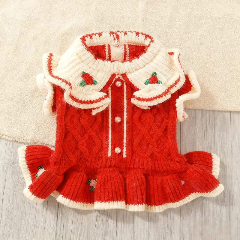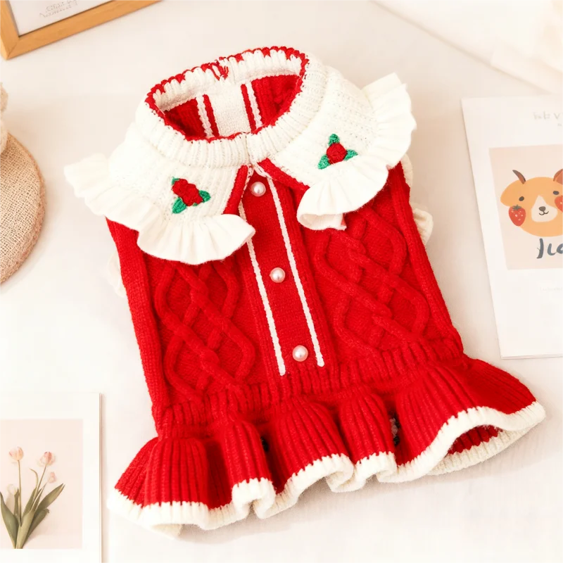 Ropa bonita a la moda para perros, falda cálida de princesa para perros, vestido de punto suave para cachorros, suéter con estampado de flores para gatos, vestido para mascotas, disfraz de caniche
