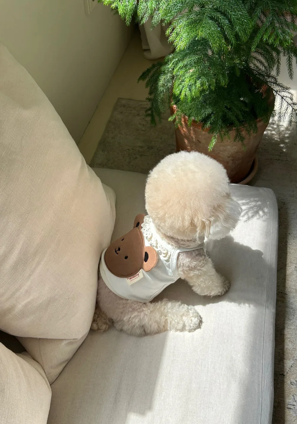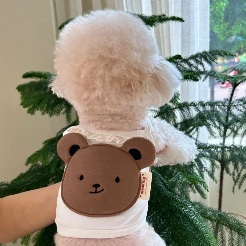 Ropa bonita para perros Ins, camisola de encaje bordado con orejas de oso, chaleco de algodón para perros, camiseta para perros, ropa para gatos, ropa para cachorros