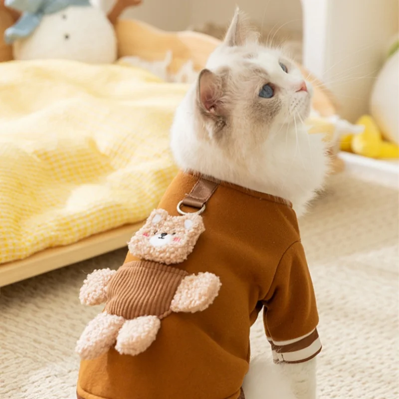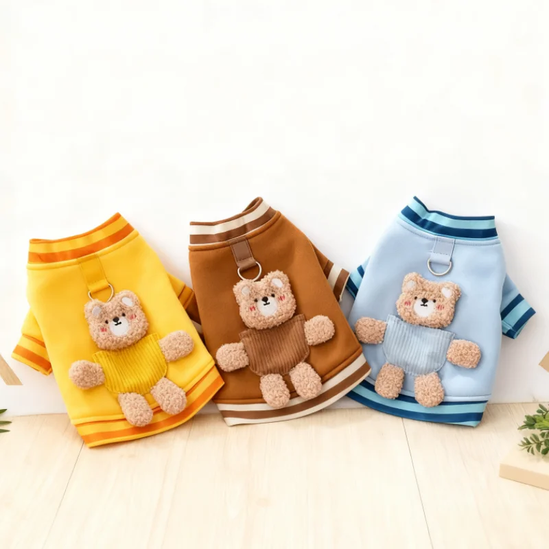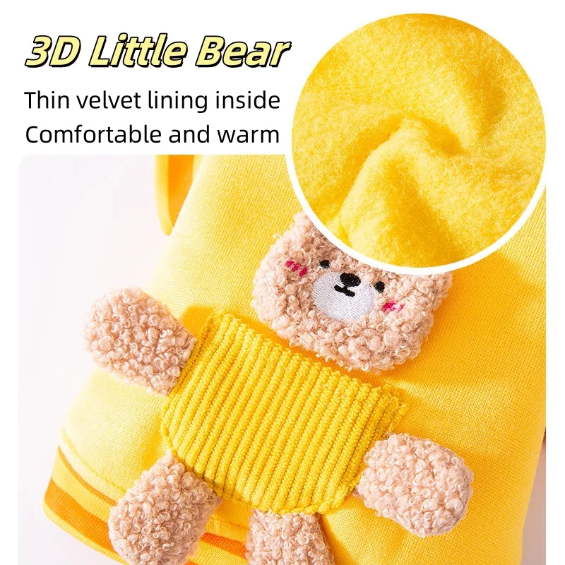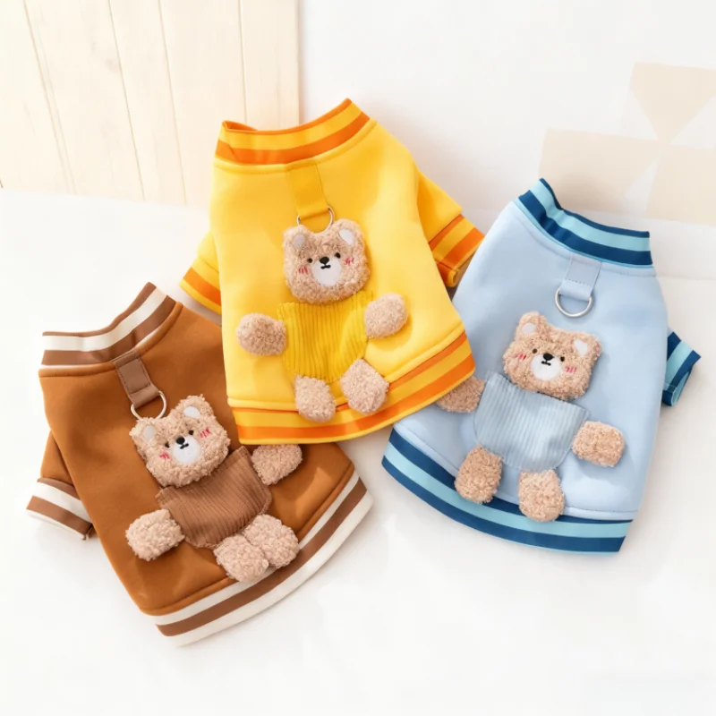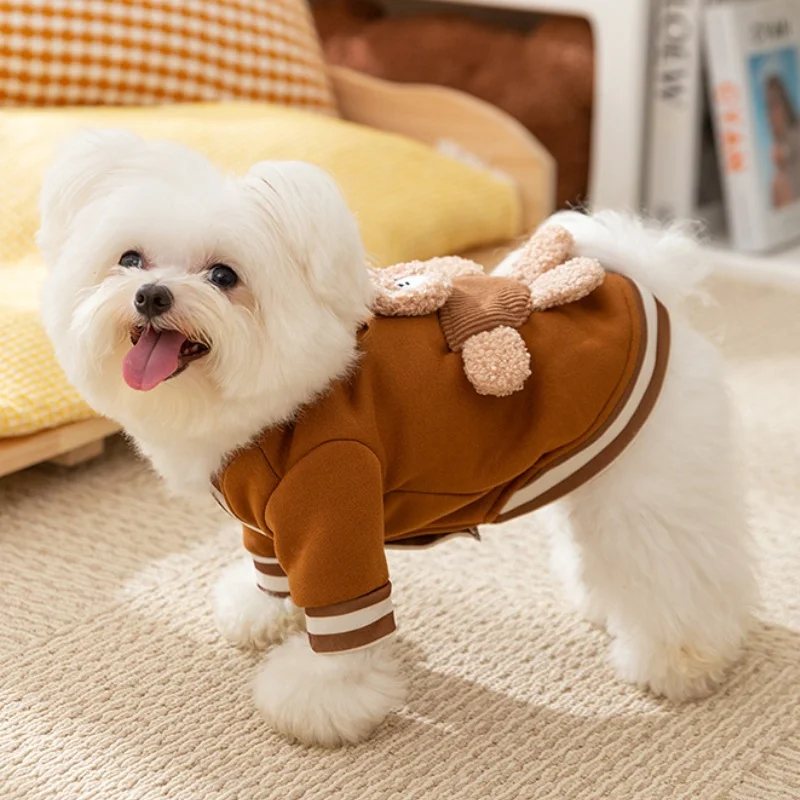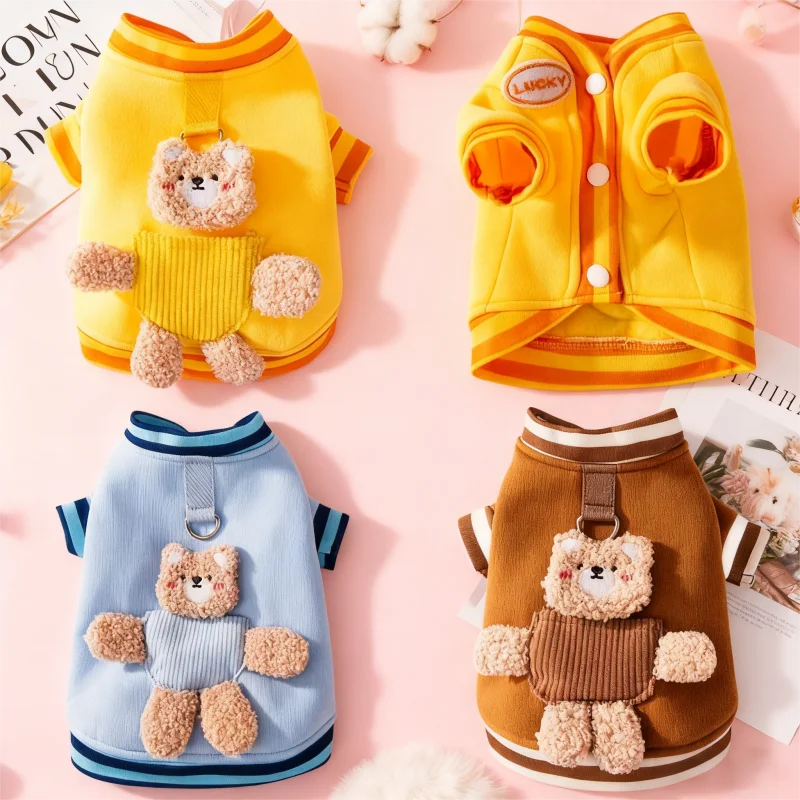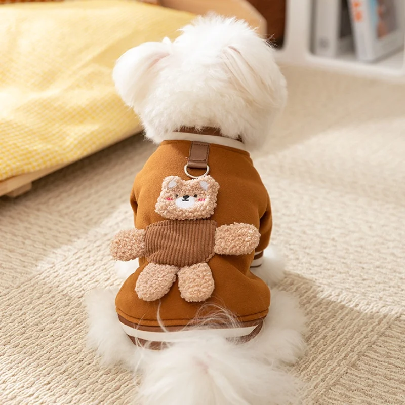 Linda ropa de oso 3D para perros, chaqueta de invierno para perros, abrigo, sudadera cálida de lana para cachorros con anillo en D, abrigo de gato a la moda, ropa para mascotas