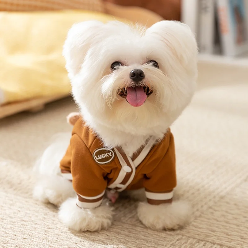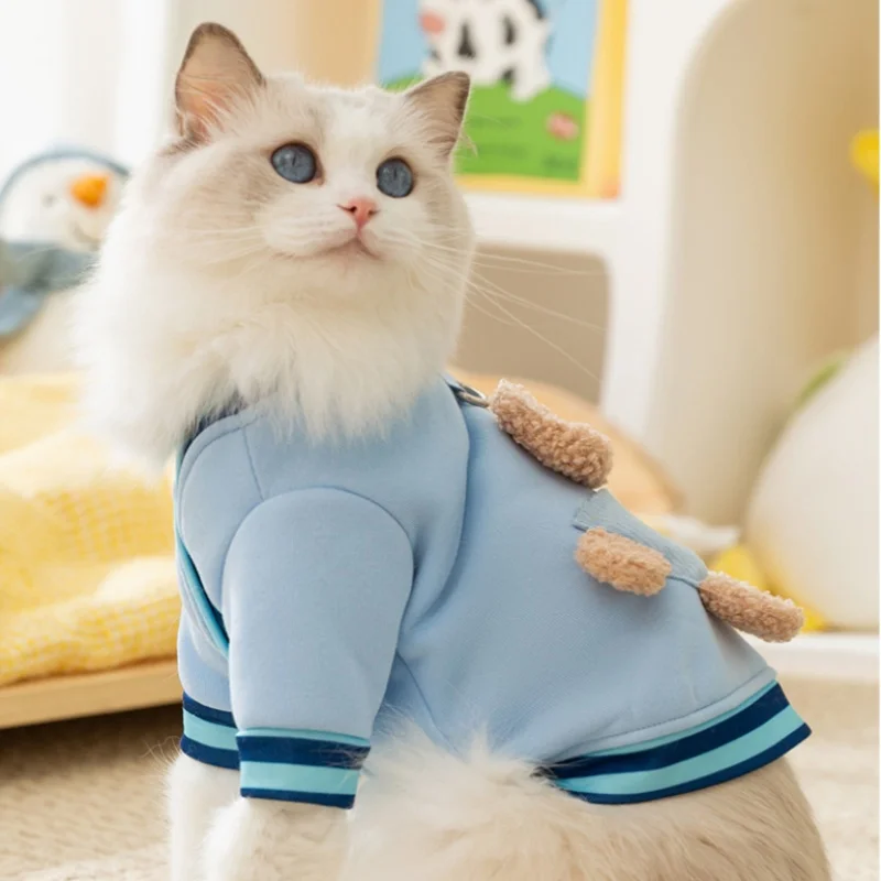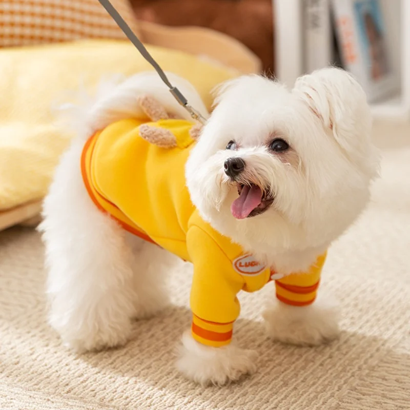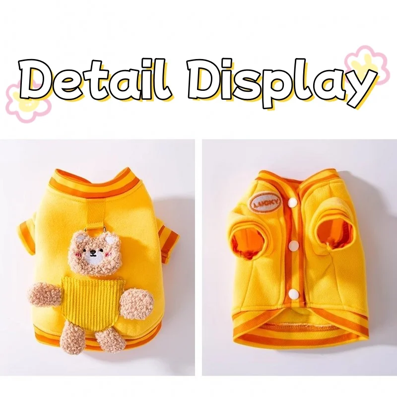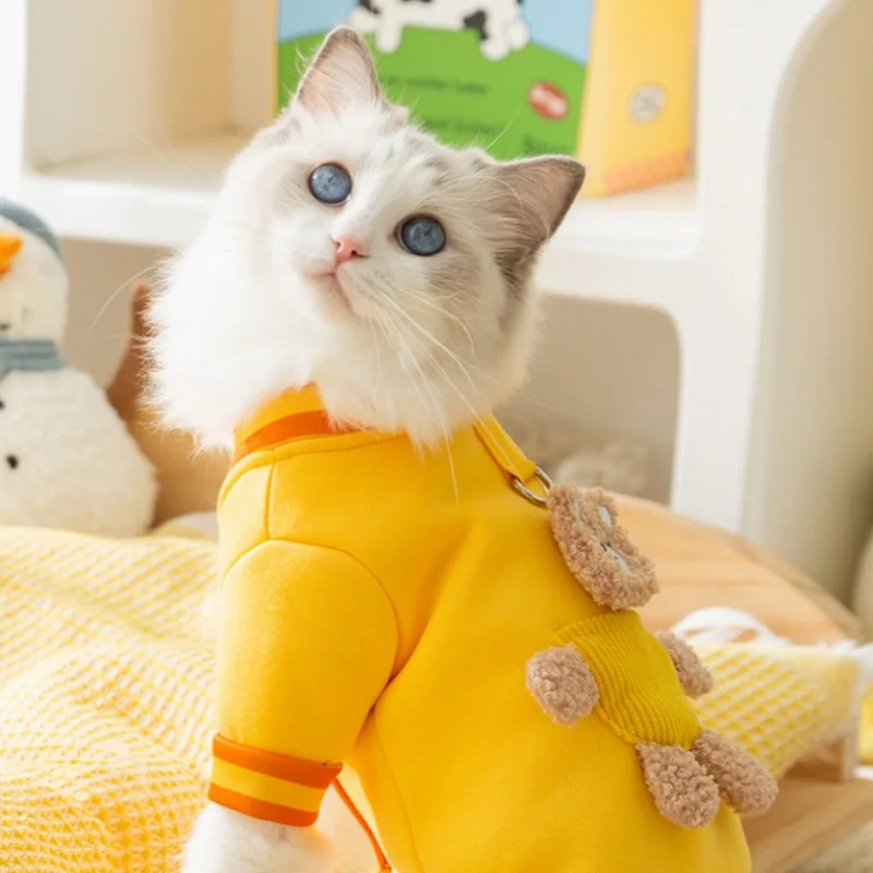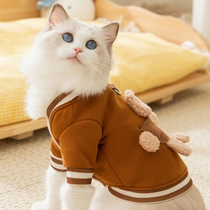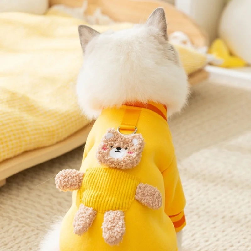 Linda ropa de oso 3D para perros, chaqueta de invierno para perros, abrigo, sudadera cálida de lana para cachorros con anillo en D, abrigo de gato a la moda, ropa para mascotas