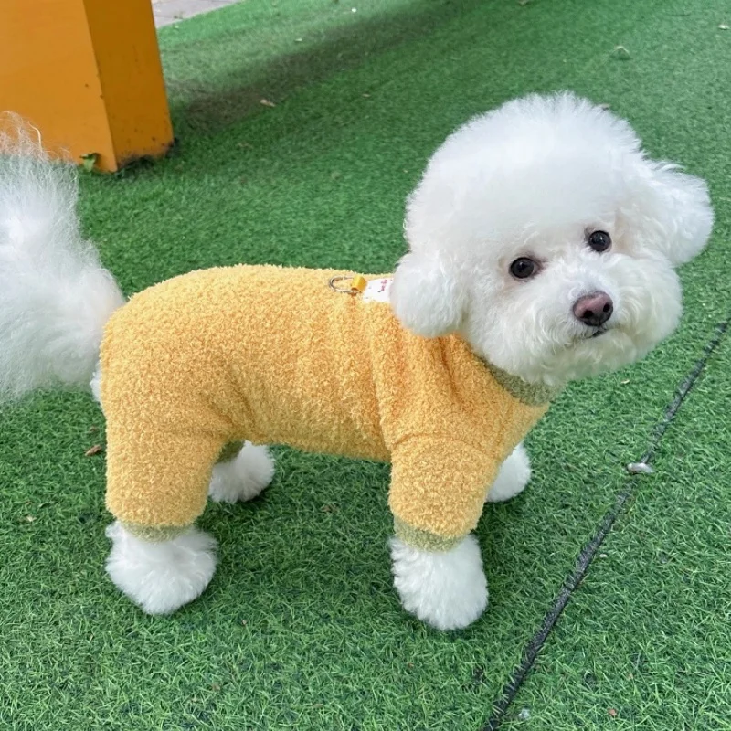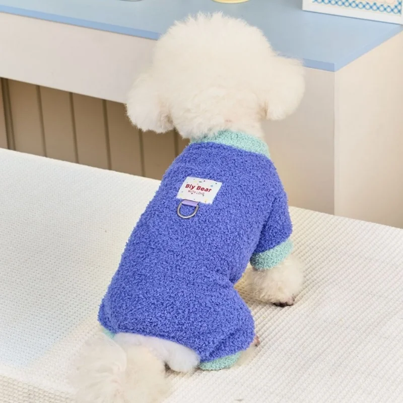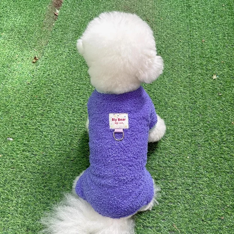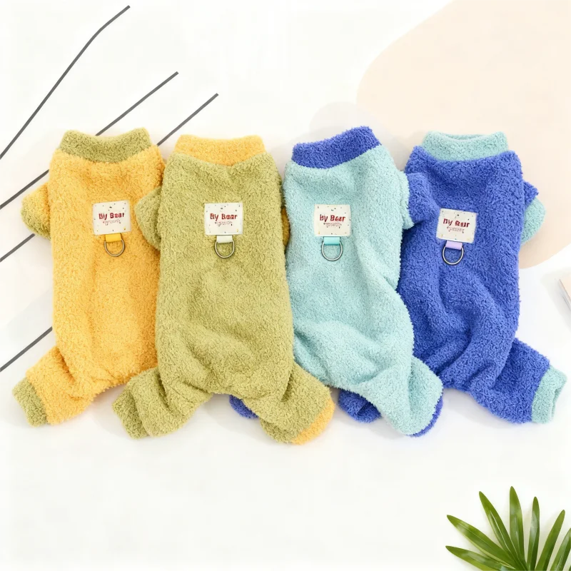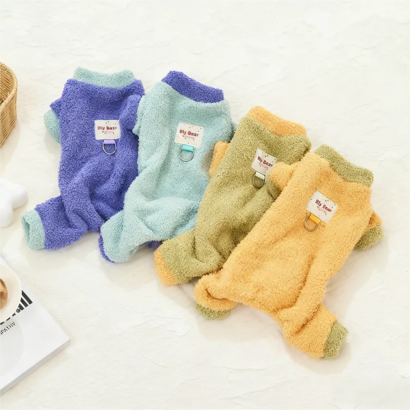Linda ropa sólida para perros, mono cálido de lana para perro con anillo en D, peleles suaves multicolores para cachorros, ropa de invierno para mascotas, abrigo de gato a la moda
