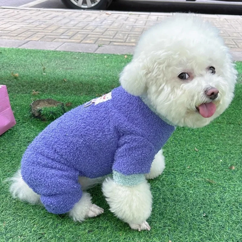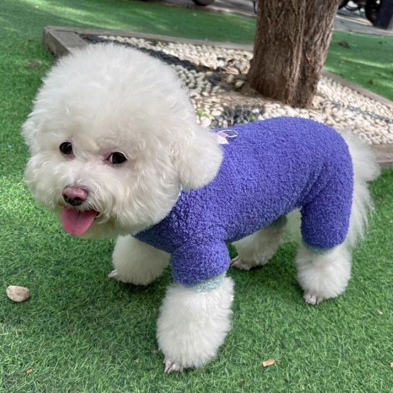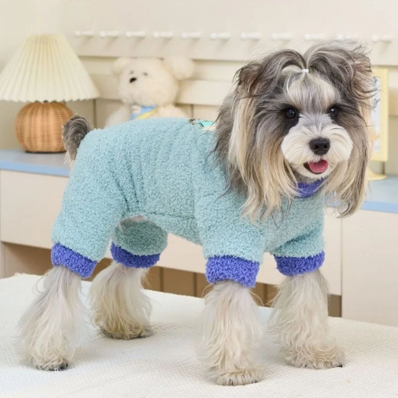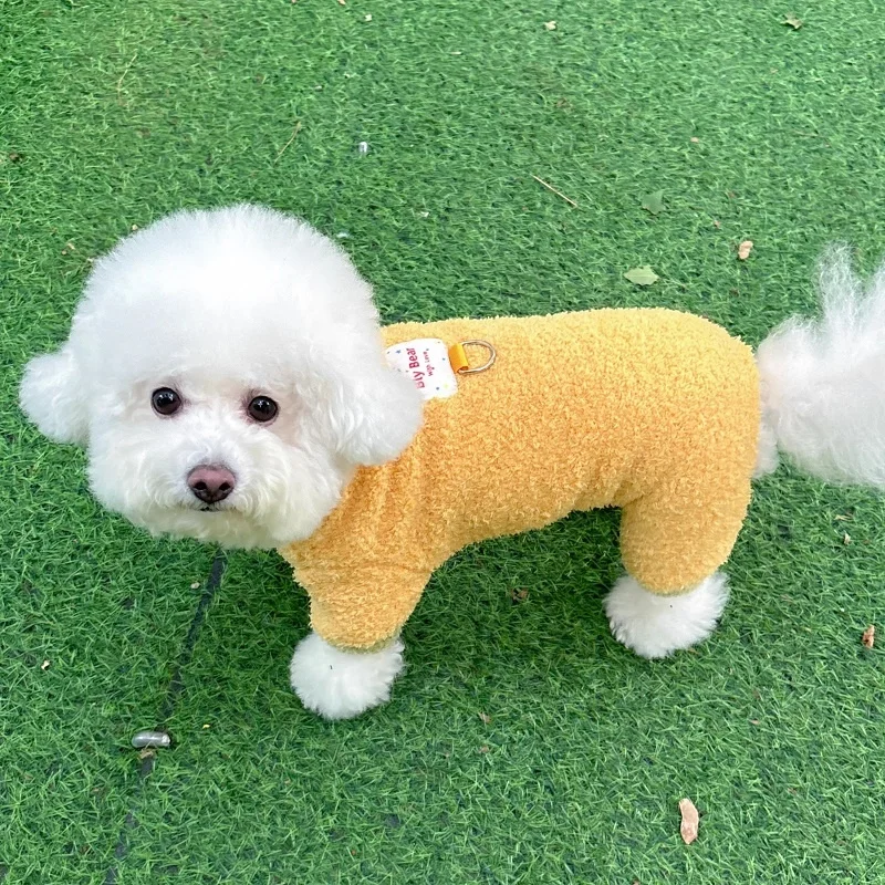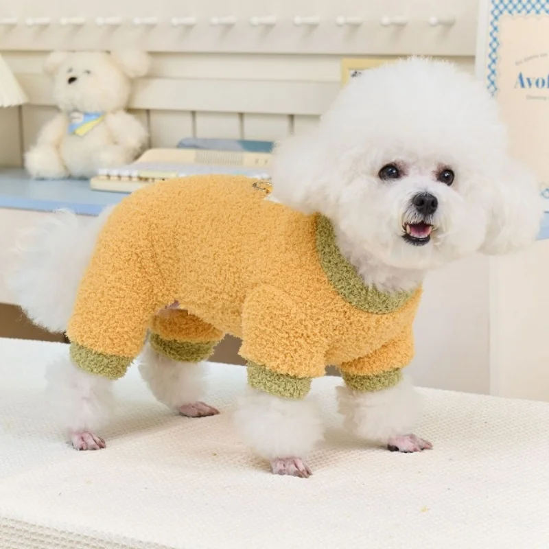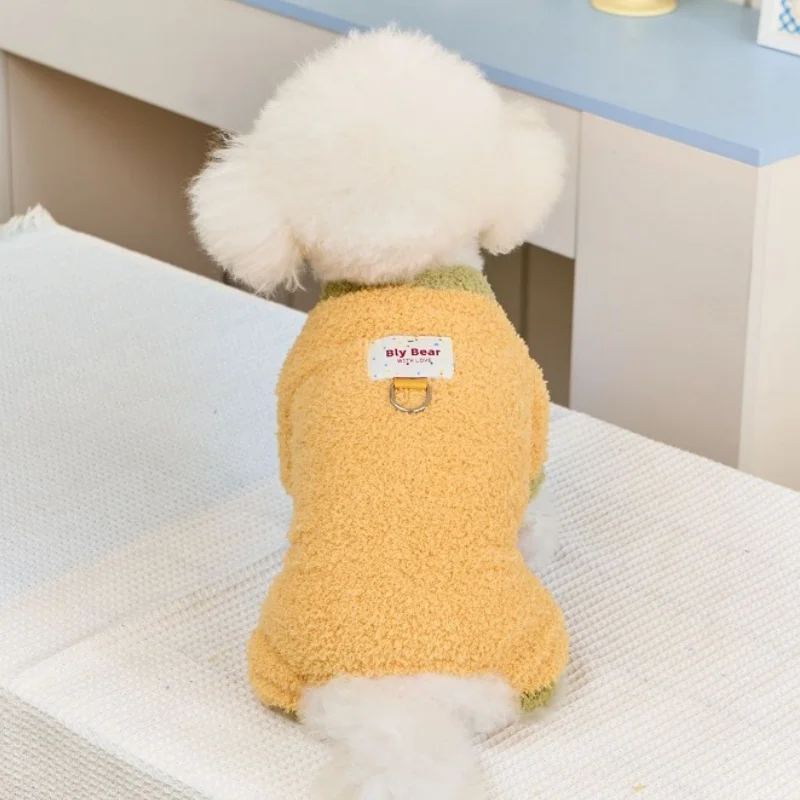 Linda ropa sólida para perros, mono cálido de lana para perro con anillo en D, peleles suaves multicolores para cachorros, ropa de invierno para mascotas, abrigo de gato a la moda