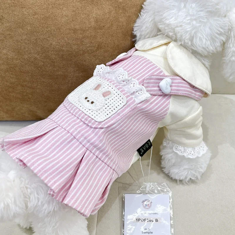 Ropa para cachorros, oso de peluche plisado para perros que caminan, ropa para el hogar, chaqueta de mono a rayas para otoño/invierno