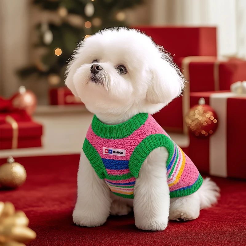Ropa para cachorros para otoño e invierno, suéter cálido para invierno, chaleco para productos para mascotas, suministros, accesorios, bonito chaleco de colores, suéter de punto