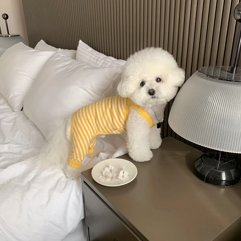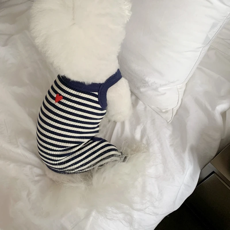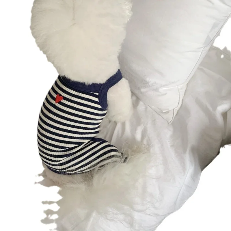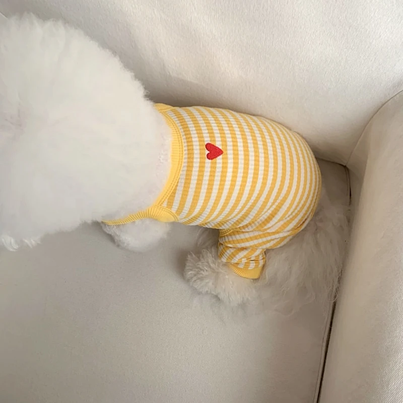 Ropa para cachorros de Yorkshire, pantalones finos con tirantes de amor bordados a rayas para primavera/verano, mono de peluche, ropa fresca de verano para cachorros pequeños