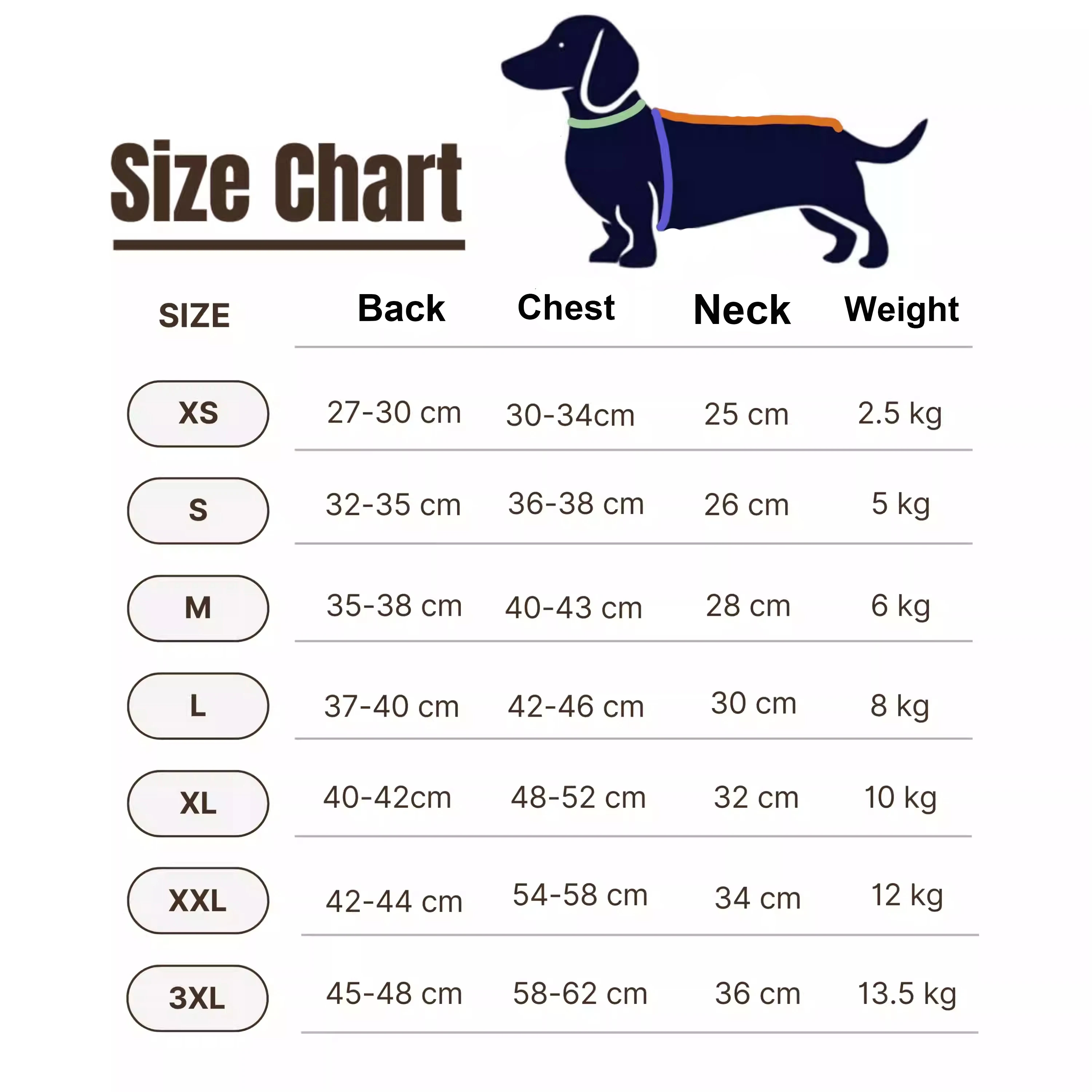 Descripción del sitio web Inqcurwtw: Pedí la talla XXXL para mi Jesse, que pesa 15 kg, y le queda un poco grande. Además, las patas son demasiado largas, por lo que se quedan atascadas debajo de sus patitas. No es realmente adecuado para un perro salchicha. Pensé que le quedaría ajustado. Decepcionado. No puedo reembolsarlo tampoco, Deering, ya que ella ya lo ha usado.